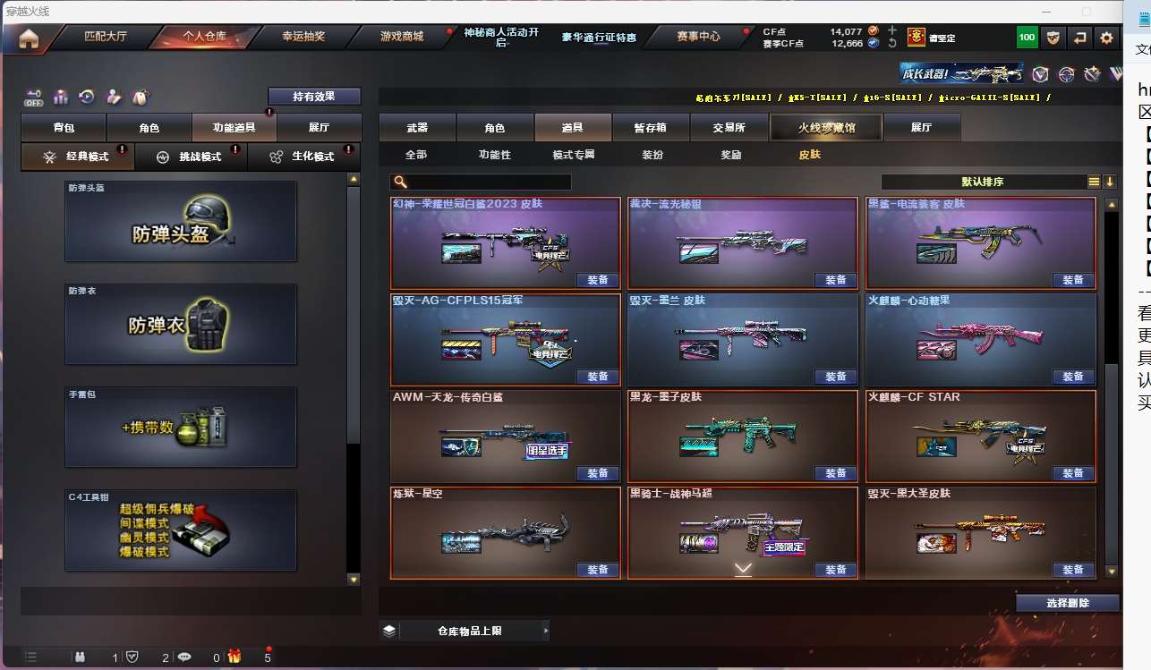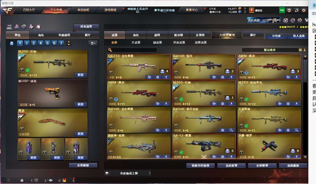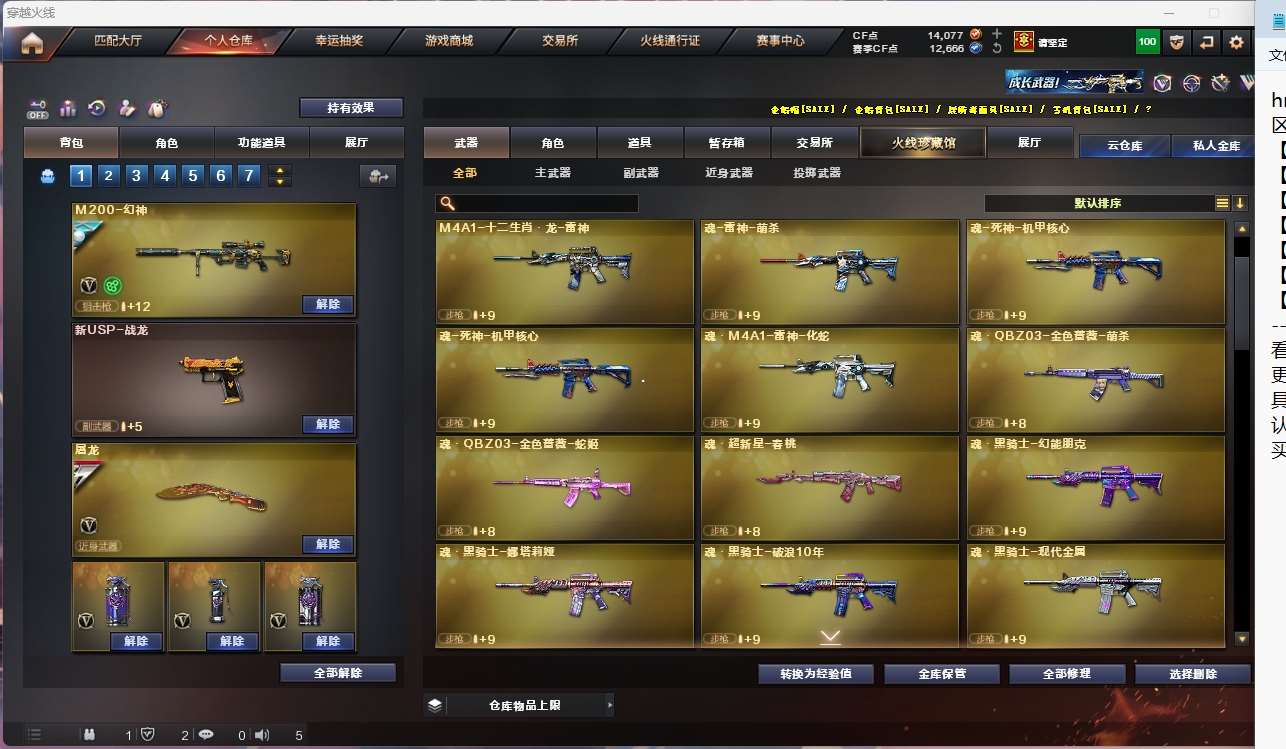 【m200幻神+电流骇客+荣耀世冠白鲨2023】【王者风神】【m200竞技荣光】【qbz金色蔷薇+卡+量子蔷薇】【火麒麟】【黑龙】【雷神+卡+女团】【黑骑士】【毁灭+星耀+ag15冠军】【裁决+卡+流光秘银】 【武器:炼狱】 【5手呛:修罗*3 天神*2】 【7刀具:屠龙*3 麒麟刺 竞技荣光 龙啸烈火龙威 玄豹 】 【3雷套:竞技荣光雷 玄豹雷*2】 【小人呛:cop白鲨 】 【音效卡:星神音效卡 金色蔷薇音效卡 裁决音效卡 雷神音效卡 】 【四防角色:王者魅影】【隼】