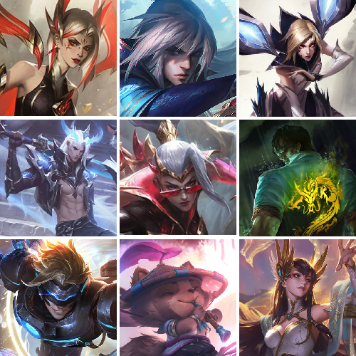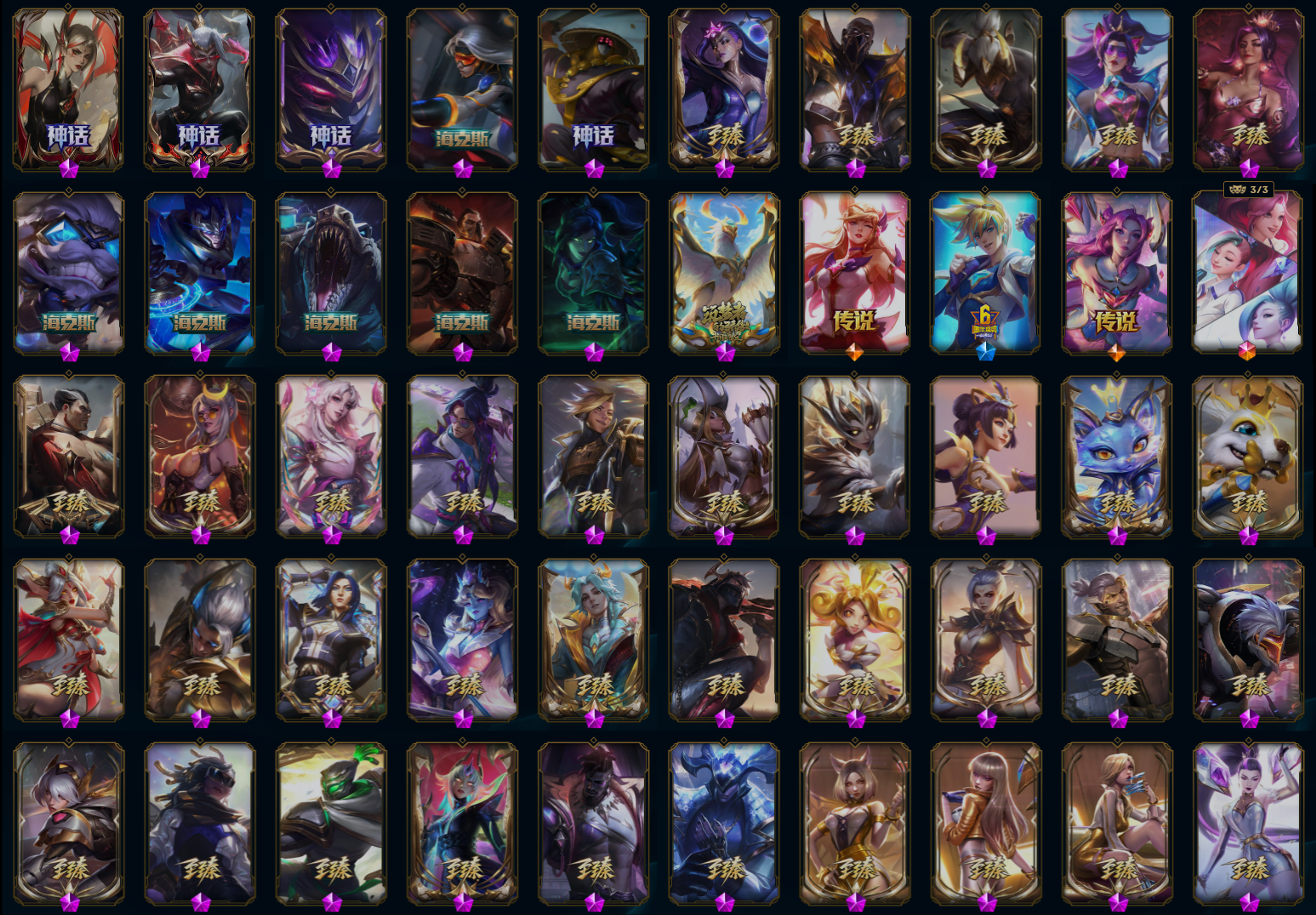 【重要皮肤】灵魂莲华拉克丝至臻 凯旋将军德莱厄斯至臻 双城之战2指挥官凯特琳至臻 暗星女王黛安娜至臻 幻灵狮心蕾欧娜至臻 人工智能悠米至臻 至高天凯尔至臻 天龙之子伊泽瑞尔至臻 斗魂觉醒派克至臻 DRX亚托克斯至臻 剪纸仙灵希维尔至臻 太空律动魔音海妖娜美至臻 至高天奎桑提至臻 灵魂莲华易至臻 西部魔影猎天使恶魔泰隆至臻 青花瓷拉克丝至臻 神凰行者烈羽焰凰霞至臻 魔女婕拉至臻 真实伤害赛娜至臻 灵能特工伊泽瑞尔至臻 源计划逆流塞拉斯至臻 源计划阴劫至臻 神龙尊者炎龙瑟提至臻 征服者贾克斯至臻 KDA二代卡莎至臻 KDA一代卡莎至臻 KDA阿狸至臻 KDA伊芙琳至臻 烈焰美人薇恩至臻 魅惑女巫厄运小姐至臻 星之守护者妮蔻至臻 源计划正义艾瑞莉娅至臻 绒毛菲兹至臻 玉剑传说武剑仙至臻 黑夜使者李青至臻 殿堂传奇薇恩 殿堂传奇乐芙兰 海克斯科技雷克顿 海克斯科技吉格斯 海克斯科技嘉文四世 海克斯科技阿利斯塔 新卧虎藏龙贾克斯 水晶泰坦诺提勒斯 恐惧新星德莱厄斯 摄魂使者薇恩 新创战纪希维尔 胜利剑圣易 胜利女神娑娜 胜利之王泰达米尔 胜利巨口克格莫 创星之灵璐璐 生化领主泰达米尔 安妮梦游仙境 星之守护者伊泽瑞尔 玉剑传说无影 玉剑传说舞剑仙 神凰行者幽羽玄凰萨勒芬妮 神凰行者烈羽焰凰霞 女帝格温 玉剑传说神机花火 玉剑传说舞龙卫 玉剑传说翼剑仙 剪纸仙灵娜美 龙的传人李青 天龙之子卡莎 天龙之子斯莫德 天龙之子易 替父从军花木兰 碧玉之牙卡西奥佩娅 北辰之威内瑟斯 司马懿仲达 王国机神玄武盖伦 胜利女神奥莉安娜 胜利之剑亚托克斯 意乱情迷蔚 碎心之拳蔚 甜心之羽霞 甜心之翎洛 觅心之翼奎因 水晶玫瑰斯维因 北极星圣贤基兰 雪球也能爆炸吉格斯 圣诞捣蛋鬼金克丝 圣诞老人德莱文 冬季仙境卡尔玛 冰雪女神辛德拉 魄罗骑士瑟庄妮 平安夜女神娑娜 圣诞糖果棒厄运小姐 魅惑女巫厄运小姐 魅惑女巫伊莉丝 小恶魔菲兹 泳池派对厄运小姐 泳池派对塔里克 泳池派对李青 泳池派对蕾欧娜 御星魔矢艾希 鸡里奥 制胜金球拉莫斯 DRX茂凯 EDG厄斐琉斯 EDG佛耶戈 EDG格雷福斯 EDG悠米 EDG佐伊 FPX李青 iG卡莎 iG乐芙兰 SSG嘉文四世 SSG伊泽瑞尔 SKTT1烬 SKTT1辛德拉 SKTT1奥拉夫 SKTT1阿利斯塔 SKTT1卡莉丝塔 SKTT1瑞兹 SKTT1阿兹尔 SSW锤石 SSW雷恩加尔 SSW图奇 SSW辛吉德 SKTT1贾克斯 SKTT1劫 SKTT1李青 SKTT1薇恩 暗杀星蒙多 Fnatic迦娜 Fnatic嘉文四世 冰雪节格雷福斯 冰雪节玛尔扎哈 冰雪节辛吉德 防暴士兵辛吉德 防暴天使凯尔 钢铁之翼艾尼维亚 冠军典狱长锤石 冠军掠夺者卡兹克 冠军蔷薇乐芙兰 冠军之血希瓦娜 鬼影森森茂凯 海贼瑞兹 红桃杰克崔斯特 胡桃夹子萨科 惊悚派对阿木木 魅惑女巫悠米 密林猎手提莫 南瓜头费德提克 圣诞精灵崔丝塔娜 圣诞开心鬼提莫 圣诞狂欢努努和威朗普 圣诞玩偶波比 圣诞驯鹿克格莫 外星装甲库奇 无头骑士赫卡里姆 喜庆之树茂凯 邪恶圣诞老人维迦 幸福女神乐芙兰 雪默丁格 野兽猎人德莱文 野兽猎人瑟庄妮 勇者阿狸 勇者奈德丽 暗影沃里克 冠军之箭艾希 诺斯费拉图弗拉基米尔 阿木木主人不要我了 2022全球总决赛阿兹尔 波比的巧克力工坊 都铎王朝图奇 十五周年纪念希维尔 十周年纪念安妮 源代码乐芙兰 神凰行者瑞羽圣凰艾尼维亚 灵魂守卫乌迪尔 未来战士伊泽瑞尔 KDAALLOUT萨勒芬妮独立音乐人 KDAALLOUT萨勒芬妮明日新星 KDAALLOUT萨勒芬妮超级巨星