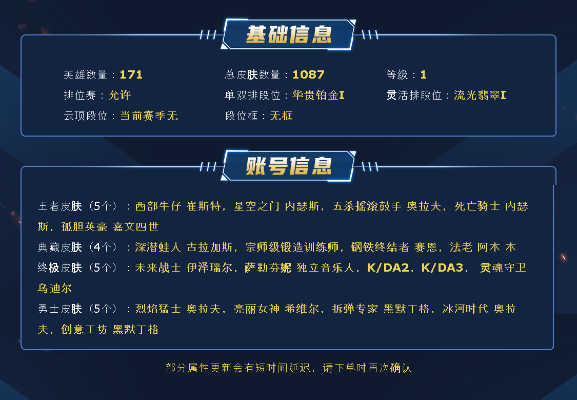 ~~喜欢记得收藏~~可排位~~1077皮全英雄丨823原皮254炫彩~~租之前尽量查一下游戏ID,确保段位是您需要的,避免浪费您的时间~~请勿挂机逃跑故意送人头,谢谢合作,谢谢~~