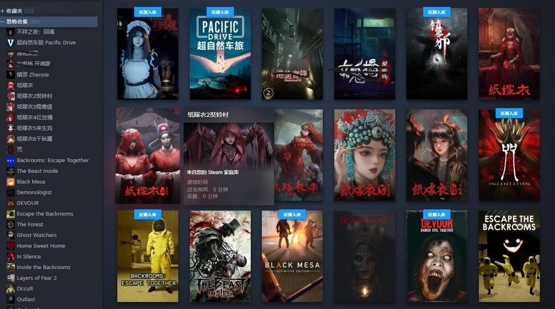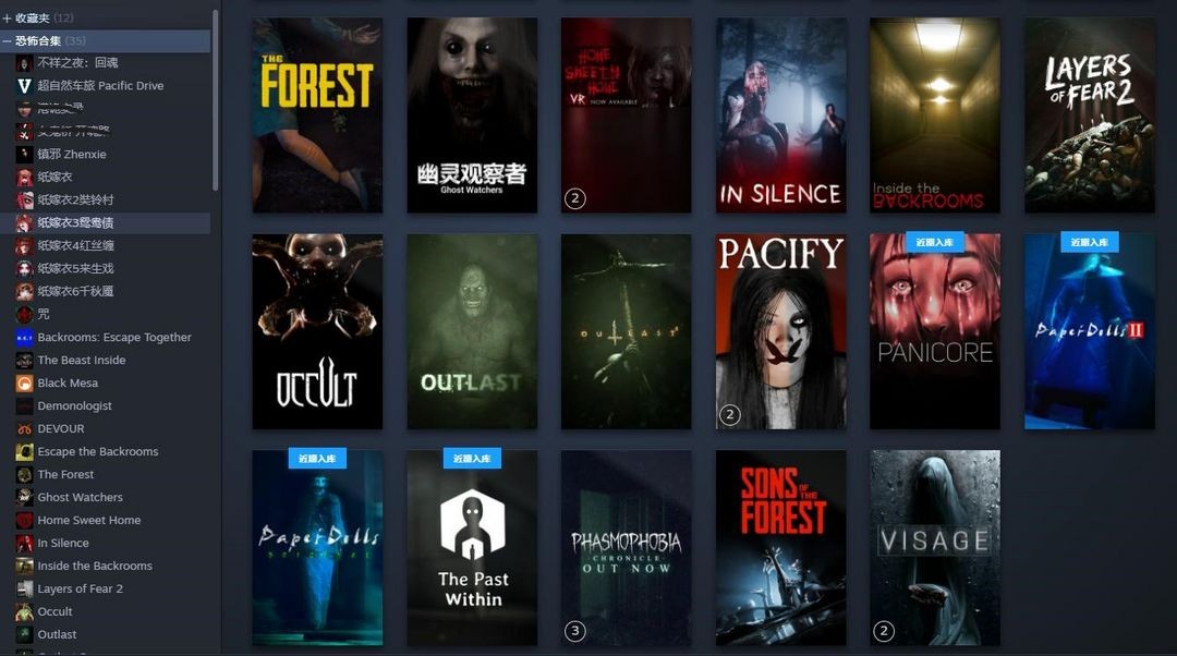 本号游戏恐鬼症、心魔、逃离后室、安抚、逃离后室一起、面容、层层恐惧、 森林、森林之子、不祥之夜回魂、甜蜜之家、逃生1+2、港-诡-实录、女鬼-桥1+2、纸嫁衣1-6、纸人1+2、镇邪、咒、吞噬、恶魔学家、恐慌核心、超自然之旅、幽灵观察者、内心往事、黑山研究所、寂静、暗防深入后室、Occult