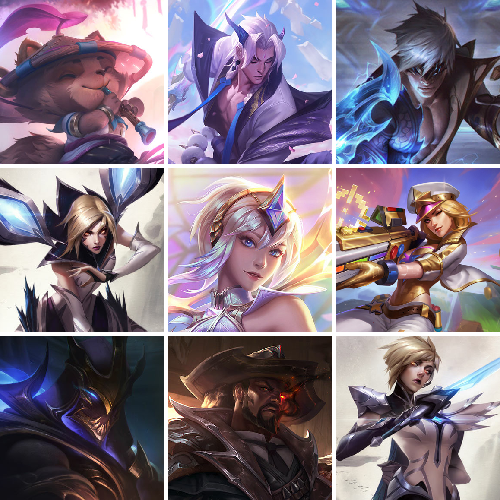 【重要皮肤】魅惑女巫莫甘娜至臻 太空律动璐璐至臻 真实伤害亚索至臻 星之守护者索拉卡至臻 灵能特工伊泽瑞尔至臻 源计划阴劫至臻 神龙尊者炎龙瑟提至臻 黑夜使者凯隐至臻 KDA二代卡莎至臻 烈焰美人薇恩至臻 烈焰美人薇恩2022至臻 电玩女神凯特琳至臻 电玩女神凯特琳2022至臻 魅惑女巫厄运小姐至臻 魅惑女巫厄运小姐2022至臻 源计划正义艾瑞莉娅至臻 源计划正义艾瑞莉娅2022至臻 真实伤害奇亚娜至臻 真实伤害奇亚娜2022至臻 绒毛菲兹至臻 绒毛菲兹2022至臻 玉剑传说武剑仙至臻 玉剑传说武剑仙2022至臻 黑夜使者李青至臻 黑夜使者李青2022至臻 海克斯科技雷克顿 海克斯科技斯维因 海克斯科技吉格斯 海克斯科技嘉文四世 海克斯科技崔丝塔娜 黎明使者卡尔玛 恐惧新星德莱厄斯 零之枪骑赫卡里姆 摄魂使者薇恩 胜利剑圣易 胜利女神娑娜 胜利之王泰达米尔 胜利巨口克格莫 舞会公主安妮 创星之灵璐璐 荣誉使者玛尔扎哈 黑夜使者弗拉基米尔 勇敢的心德莱厄斯 电玩勇者锐雯 电玩女神阿狸 替父从军花木兰 神龙烈焰金克丝 碧玉之牙卡西奥佩娅 春晖神女拉克丝 你看见过我的熊猫吗安妮 美猴王孙悟空 玉净夜叉凯特琳 广寒仙子嫦娥 虎痴之拳蔚 张辽文远 纳财大帝塔姆 神龙之翼库奇 胜利女神瑟庄妮 胜利机器人布里茨 胜利女神奥莉安娜 胜利枪神卢锡安 胜利之剑亚托克斯 甜心宝贝安妮 甜心宝贝娑娜 觅心游侠卢锡安 觅心女王艾希 觅心猫猫悠米 觅心猎手薇恩 冬境仙灵索拉卡 寒冬精灵璐璐 圣诞老人德莱文 冰雪风暴希维尔 冬季仙境卡尔玛 持胡萝卜的雪人易 魄罗骑士瑟庄妮 夺命美人卡特琳娜 平安夜女神娑娜 圣诞糖果棒厄运小姐 魅惑女巫艾尼维亚 魅惑女巫迦娜 魅惑女巫崔丝塔娜 死亡誓约劫 勇敢的心德莱厄斯 泳池派对凯特琳 泳池派对普朗克 泳池派对奥莉安娜 泳池派对塔莉垭 泳池派对厄运小姐 泳池派对塔里克 泳池派对格雷福斯 泳池派对雷克顿 电玩战魂赫卡里姆 斩星魔剑易 穿星魔锋赵信 御星魔矢艾希 送披萨的小姐姐希维尔 克格汪 iG卡蜜尔 iG洛 iG卡莎 iG艾瑞莉娅 iG乐芙兰 iG菲奥娜 SSG纳尔 SSG塔莉垭 SSG伊泽瑞尔 SKTT1辛德拉 SKTT1阿利斯塔 SKTT1卡莉丝塔 SKTT1瑞兹 SKTT1阿兹尔 SSW锤石 SSW雷恩加尔 SSW泰隆 SSW图奇 SSW辛吉德 SKTT1贾克斯 SKTT1劫 SKTT1婕拉 SKTT1李青 暗杀星奥莉安娜 暗杀星蒙多 暗杀星慎 Fnatic迦娜 Fnatic库奇 Fnatic古拉加斯 Fnatic嘉文四世 Fnatic卡尔萨斯 冰雪节格雷福斯 冰雪节玛尔扎哈 冰雪节辛吉德 冰雪兽纳尔 防暴士兵格雷福斯 防暴士兵辛吉德 防暴天使凯尔 钢铁之翼艾尼维亚 冠军典狱长锤石 冠军之矛卡莉丝塔 冠军之刃锐雯2016 冠军之血希瓦娜 冠军之隐劫 鬼影森森茂凯 鬼影重重魔腾 海贼瑞兹 红桃杰克崔斯特 胡桃夹子萨科 惊悚派对阿木木 惊悚派对费德提克 警用试作体K9内瑟斯 蓝色忧郁崔斯特 蒙多蒙多 密林猎手提莫 南瓜头费德提克 女猎手希维尔 圣诞精灵崔丝塔娜 圣诞开心鬼提莫 圣诞狂欢基兰 圣诞狂欢努努和威朗普 圣诞老人古拉加斯 圣诞玩偶波比 圣诞驯鹿克格莫 糖果使徒费德提克 外星装甲库奇 卧虎藏龙贾克斯 无头骑士赫卡里姆 喜庆之树茂凯 邪恶圣诞老人维迦 幸福女神乐芙兰 雪默丁格 野兽猎人德莱文 野兽猎人瑟庄妮 野兽猎人泰达米尔 英勇玩具兵普朗克 永恒之森乐芙兰 勇者阿狸 征服者阿利斯塔 征服者韦鲁斯 暗影沃里克 战场BOSS吉格斯 阿木木主人不要我了 波比的巧克力工坊 都铎王朝图奇 十周年纪念安妮 源代码乐芙兰 神凰行者瑞羽圣凰艾尼维亚 胜利凤凰艾尼维亚 大元素使拉克丝