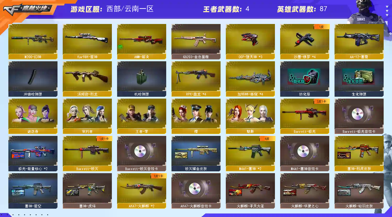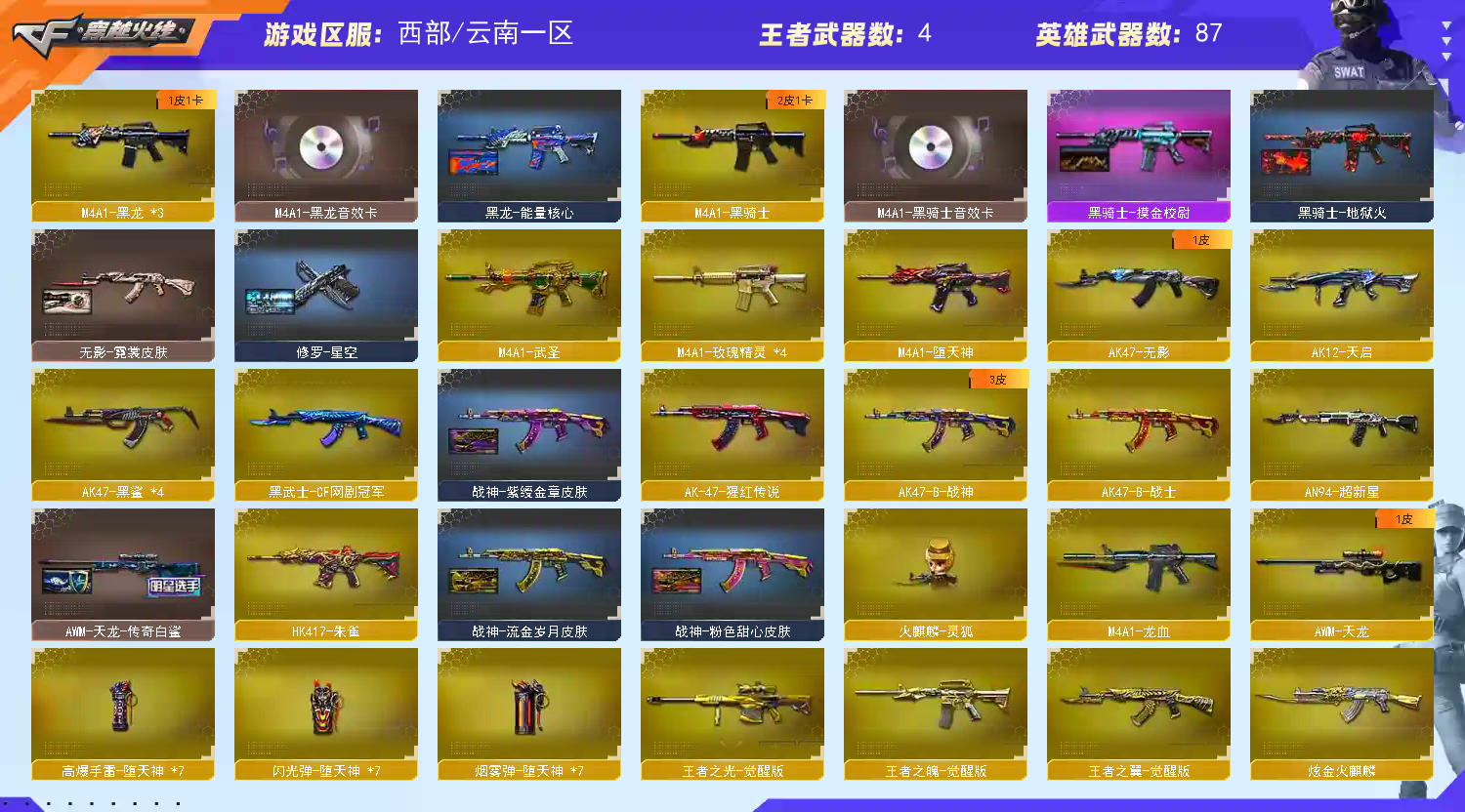 94V4王者5炫金可排位【堕天神套/CF网剧冠军武器套装/武圣套/M200幻神/Kar98K-星神/HK417-朱雀/QBZ03-金色蔷薇/4盘龙4炼狱/4修罗/GLOCK18-武圣/3把COP堕天神/】【毁灭音效卡/黑骑士音效卡/极光音效卡/黑龙音效卡/雷神音效卡/火麒麟音效卡】【雷神-烈虎皮肤/黑骑士-摸金校尉/火麒麟-雷神/毁灭青帝/毁灭CFS2018/雷神-星空/修罗CFS2018/毁灭-SV-CFPLS16冠军/修罗-星空/毁灭耀金皮肤/黑骑士-地狱火/火麒麟-轻羽皮肤/火麒麟-华夏之心/雷神-虎将/无影-霓裳皮肤/修罗-CF STAR/火麒麟-平天大圣/火麒麟-CF STAR/火麒麟-AG战队皮肤/AWM-天龙-传奇白鲨/】【迷迭香/审判者/樱/魅影/王者-零/】【王者之翼觉醒/王者之魄觉醒/王者之光觉醒/炫金火麒麟/炫金武士/炫金骑士/炫金毁灭/7套堕天神雷/火麒麟-灵狐/冰龙粉碎者/激光毁灭者/巨龙咆哮/神圣爆裂者-末日/神圣爆裂者/巴雷特-零-水下丽影/金刚伞-电玩红兔/金色小号/COP-旗袍/】【长时效烟雾保护头盔/闪光护目镜/透明头盔/透明护目镜/Q9战队炫彩背包//超级背包3-7/炫彩背包/特殊收纳包/超能女侍化妆包/全背包+扩展背包/长时效步枪弹匣/长时效散弹枪弹匣/长时效狙击枪弹匣/长时效冲锋枪弹匣/长时效机枪弹匣/长时效手枪弹匣/永久防弹衣防弹头盔手雷包C4工具钳