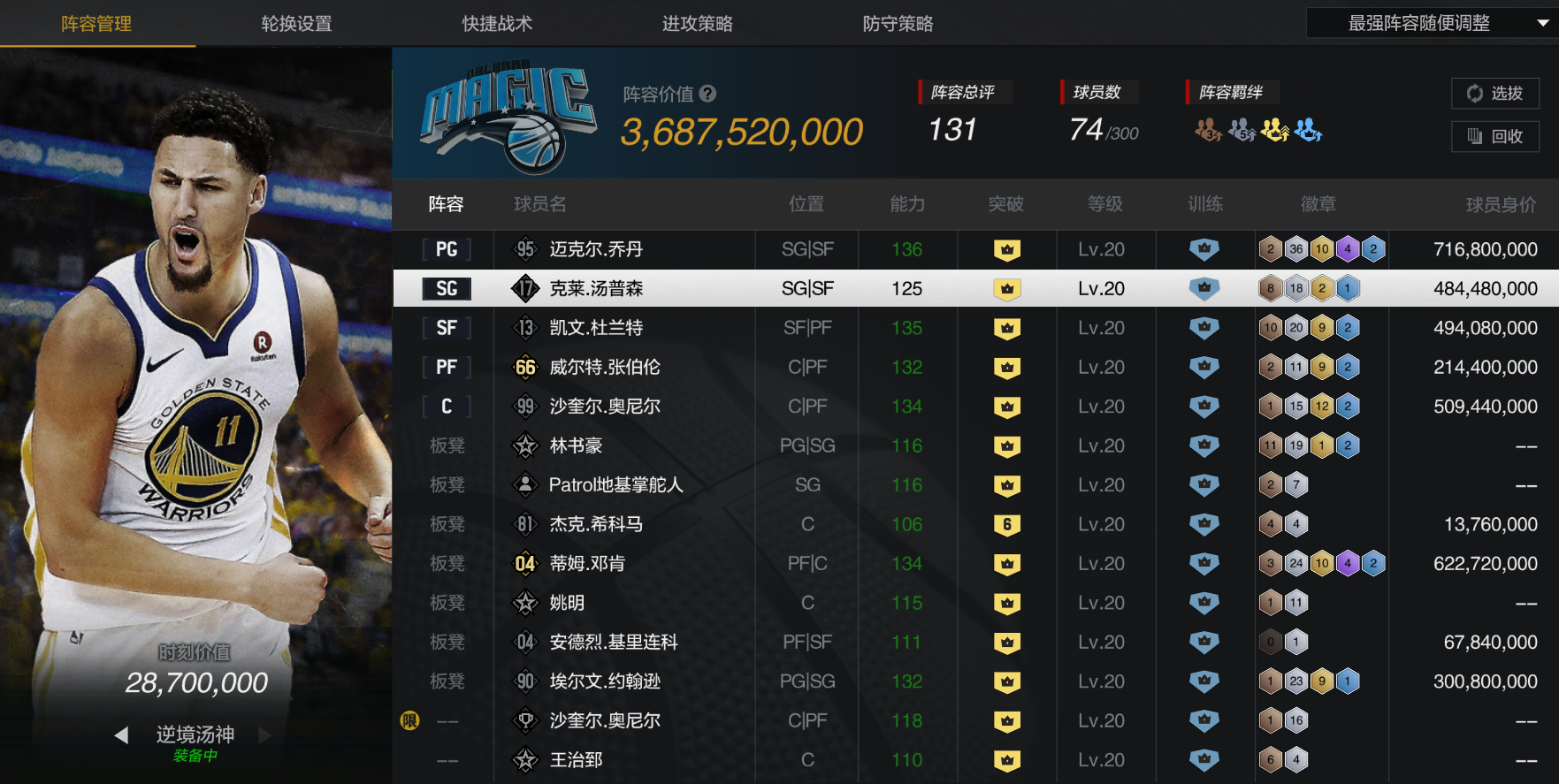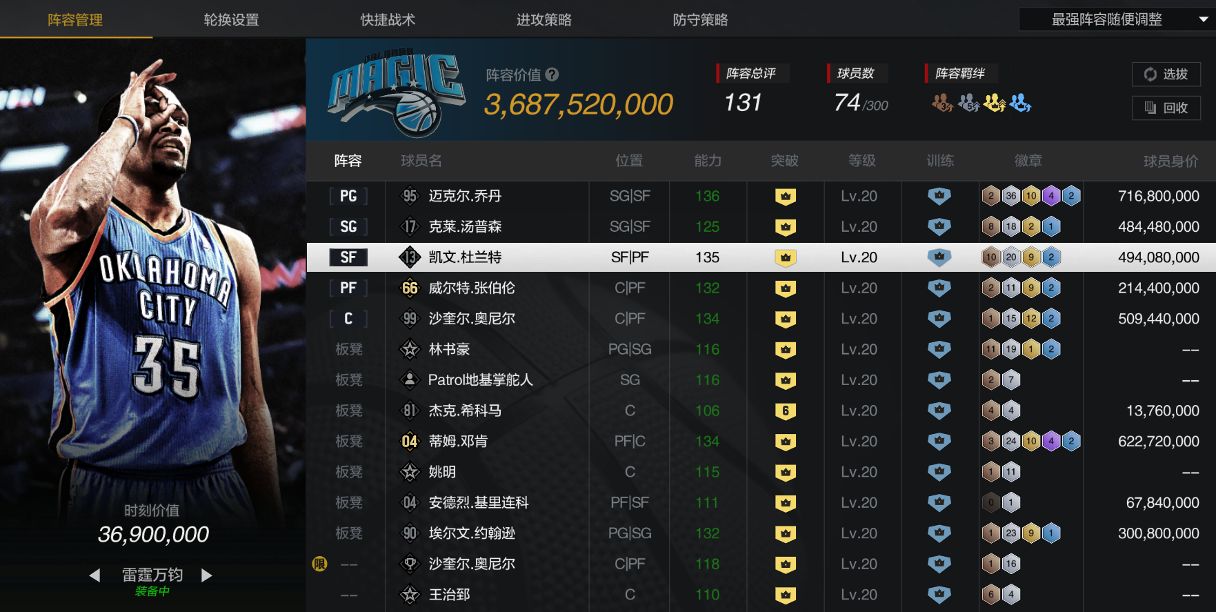37亿满大时刻邓肯、满时刻乔丹、满时刻杜兰特、满时刻汤普森、满时刻奥尼尔、满大时刻大帅、满魔、西蒙斯