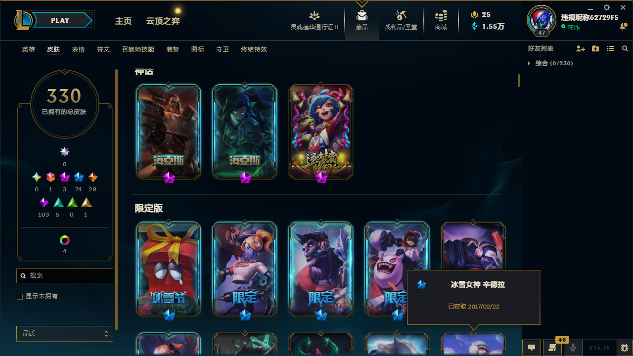 330皮暗杀星限定电玩瑞雯冰雪节限定勇敢的心SKT限定灌篮高手金牌主播德莱文SSW限定