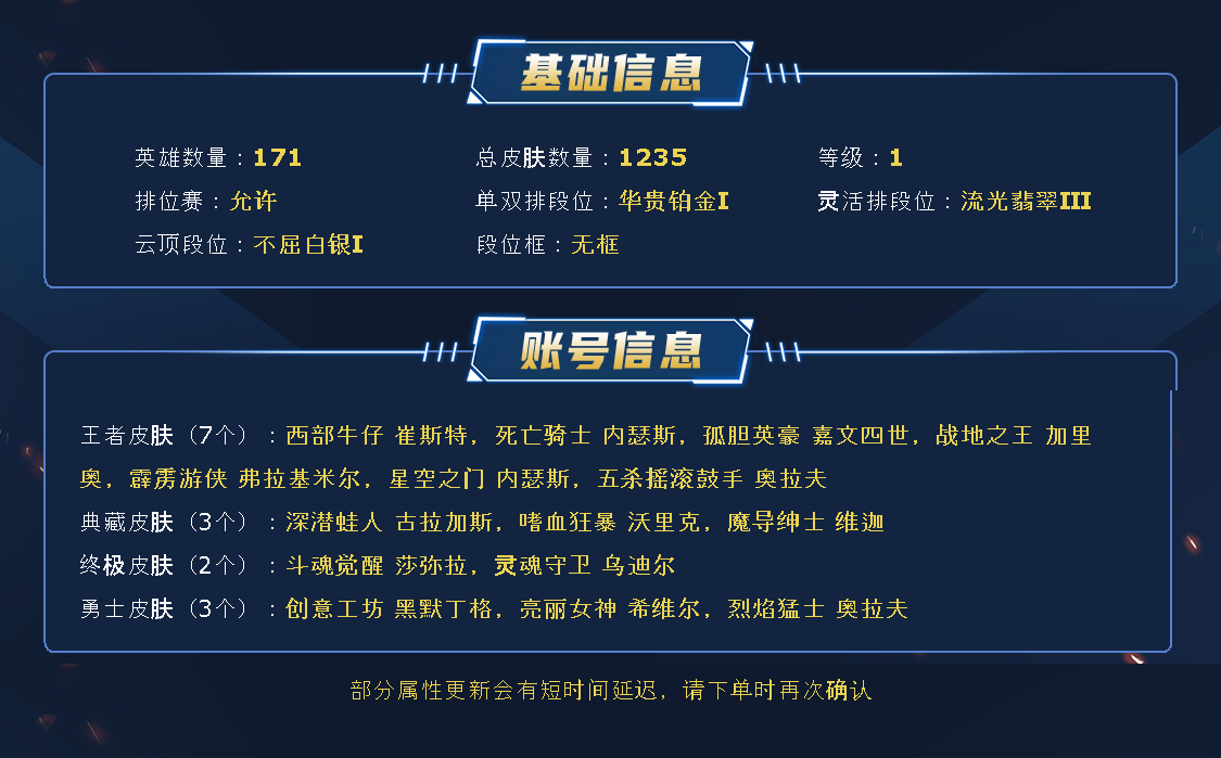 ~~喜欢记得收藏~~可排位~~1229皮全英雄丨853原皮376炫彩~~租之前尽量查一下游戏ID,确保段位是您需要的,避免浪费您的时间~~请勿挂机逃跑故意送人头,谢谢合作,谢谢~~
