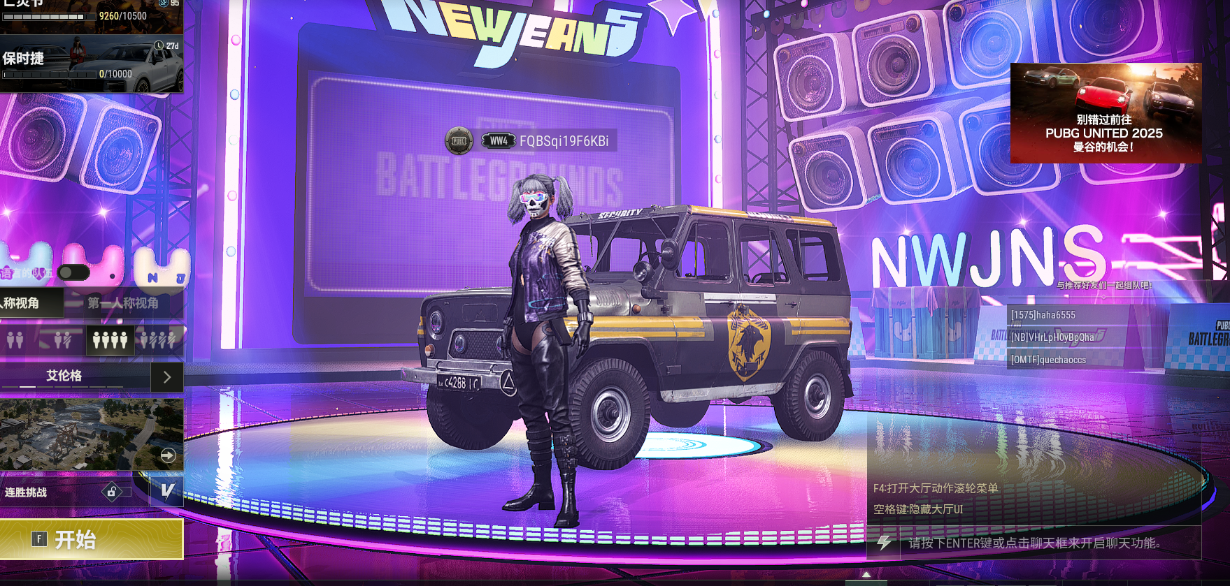 - 第一人称四排段位: 无