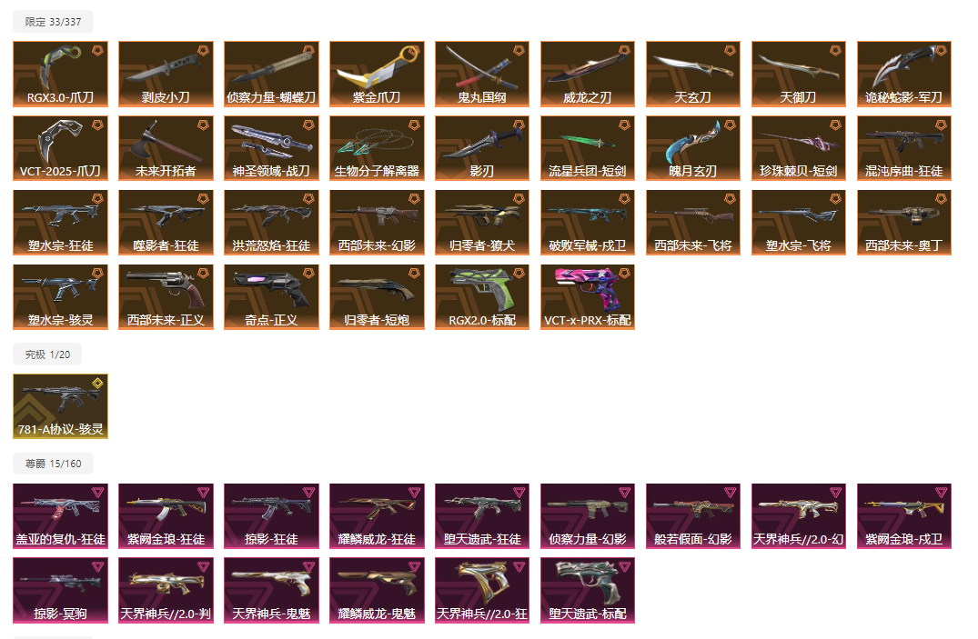 【当前段位:铂金I】精氪毕业皮齐全特效拉满⚡RGX紫金VCT剥皮威龙鬼丸⚡混沌盖亚流脓紫金狂徒⚡侦查幻影奇点正义天界鬼魅