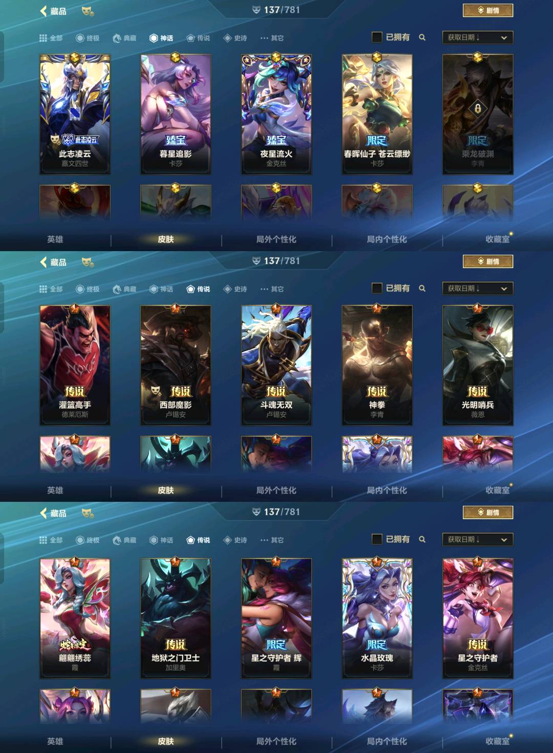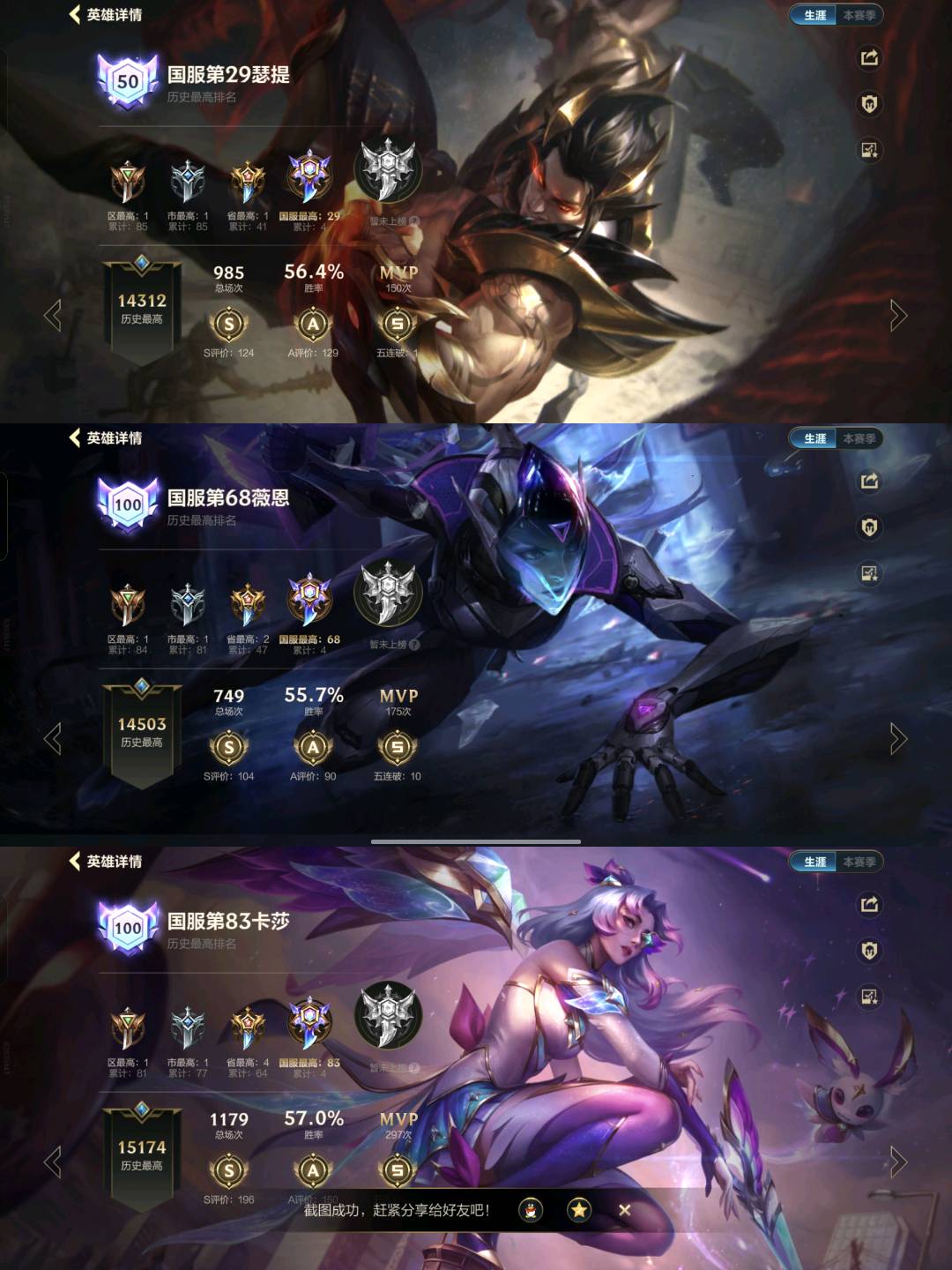 【安卓】 【不允许排位】历史三国服卡莎薇恩万豪+至尊✨全英雄✨4神话✨臻宝星之卡莎✨春晖仙子✨此志凌云✨水晶玫瑰卡莎超多限定