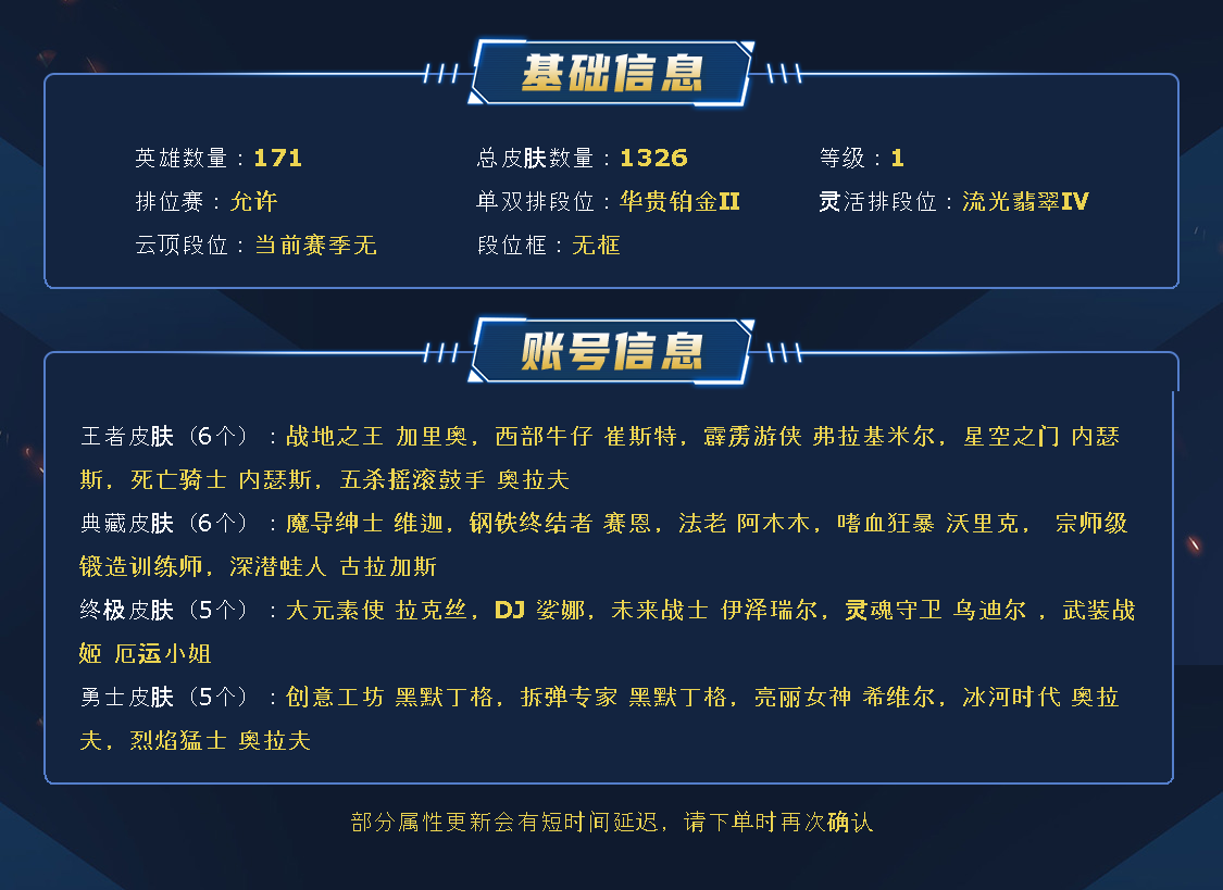 ~~喜欢记得收藏~~可排位~~1400皮全英雄~~租之前尽量查一下游戏ID,确保段位是您需要的,避免浪费您的时间~~请勿挂机逃跑故意送人头,谢谢合作,谢谢~~