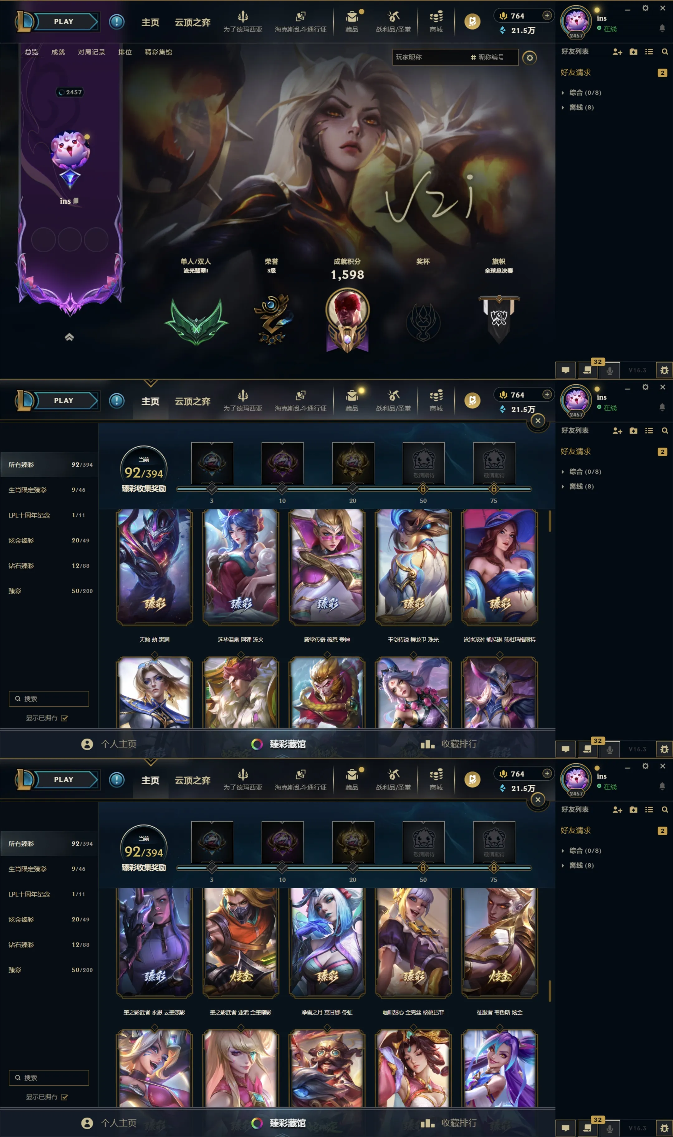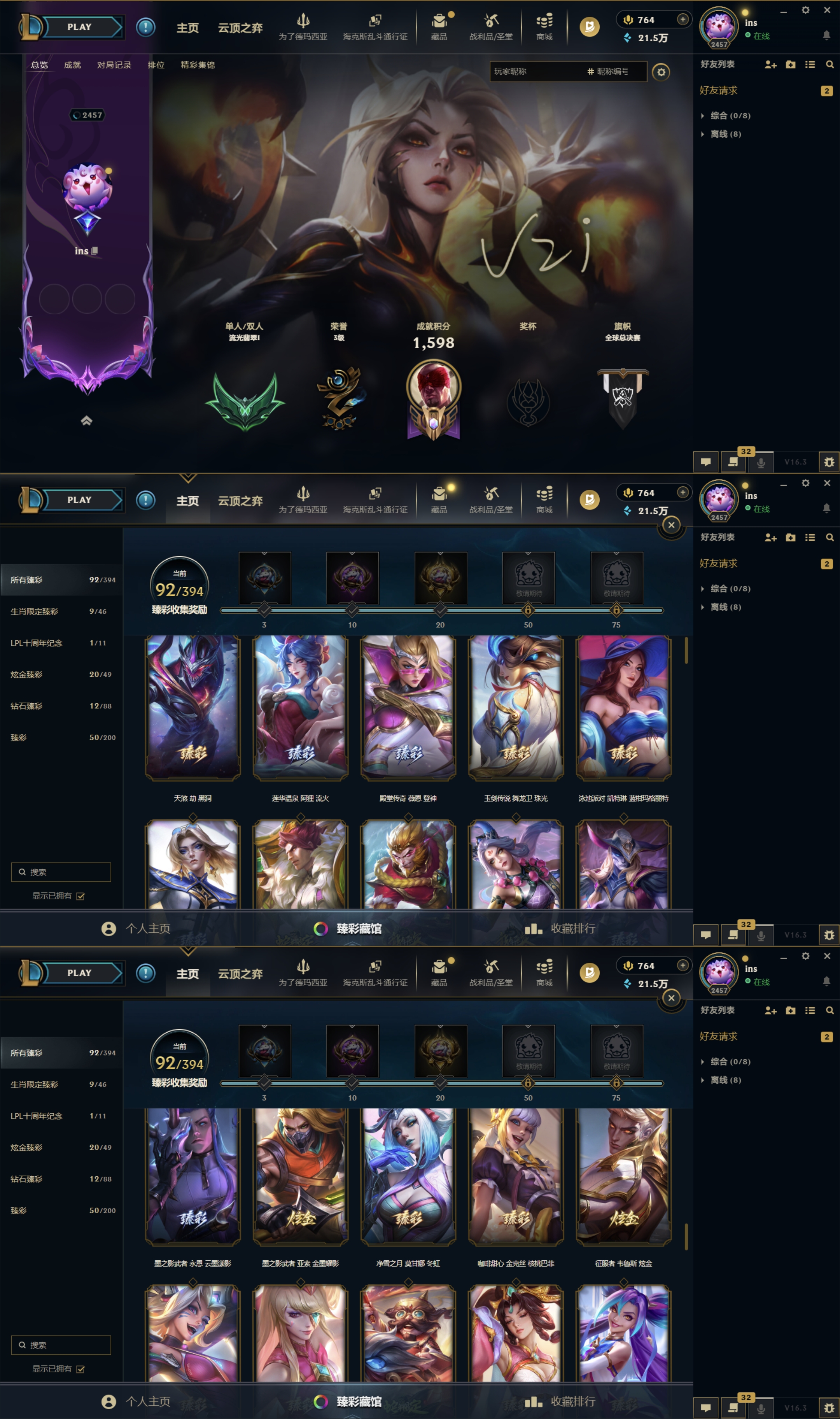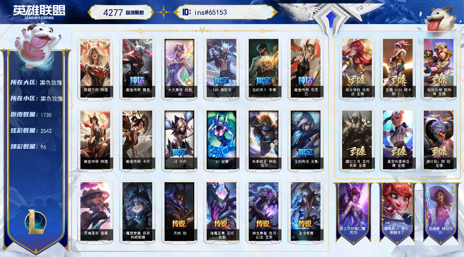 4800皮不朽阿狸卡莎神话幻想圣天龙♥️云顶30神话狼神英灵殿黑夜黎明水云天池胖胖龙群星依旧