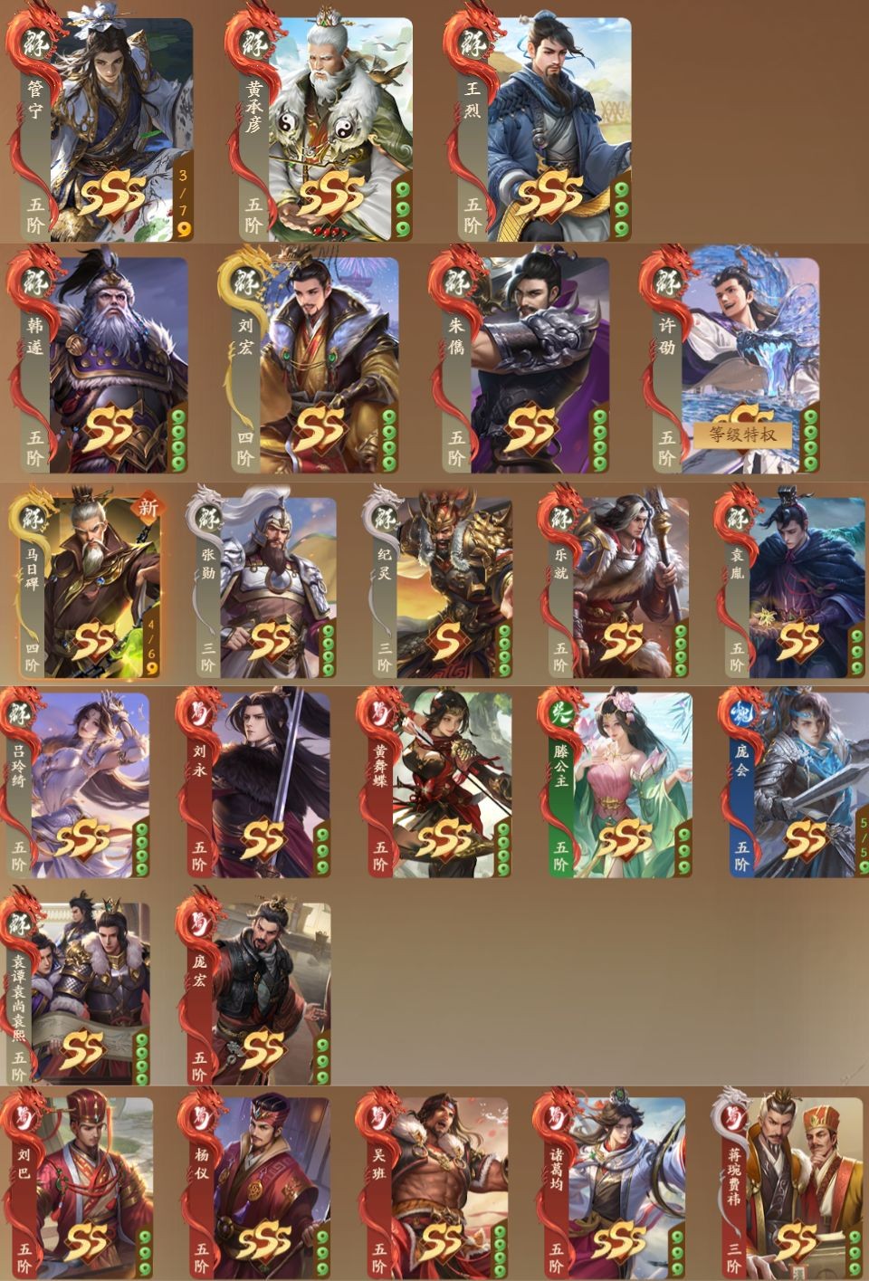 卫将军392将☆威吕布威孙权威张辽☆9谋谋姜维谋邓艾谋司马师☆神庞统神张飞神邓艾神张角☆诸葛均袁胤庞会庞宏☆5乐乐蔡文姬乐小乔乐周瑜☆水龙动许劭☆动张媱☆冰魄动吕玲绮☆黄蝶舞藤公主☆墨韵动管宁☆动周宣☆朱建平笮融☆金蛟动薛灵**☆芮姬柏灵筠马伶俐☆夏侯徽☆动曹芳☆钟毓许靖