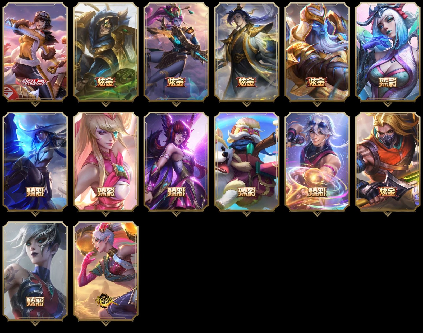 【重要皮肤】青花瓷千珏至臻 女帝黛安娜至臻 太空律动璐璐至臻 魔女乐芙兰至臻 奥术师佐伊至臻 未来战士卢锡安至臻 真实伤害亚索至臻 真实伤害赛娜至臻 福牛守护者菲奥娜至臻 源计划逆流塞拉斯至臻 源计划阴劫至臻 王国机神玄武盖伦至臻 暗星墨菲特至臻 征服者贾克斯至臻 KDA二代卡莎至臻 KDA阿狸至臻 KDA阿狸2022至臻 KDA阿卡丽至臻 KDA阿卡丽2022至臻 烈焰美人薇恩至臻 烈焰美人薇恩2022至臻 星之守护者妮蔻至臻 星之守护者妮蔻2022至臻 源计划正义艾瑞莉娅至臻 源计划正义艾瑞莉娅2022至臻 真实伤害奇亚娜至臻 真实伤害奇亚娜2022至臻 绒毛菲兹至臻 绒毛菲兹2022至臻 玉剑传说武剑仙至臻 玉剑传说武剑仙2022至臻 腥红之月亚托克斯至臻 腥红之月亚托克斯2022至臻 海克斯科技瑟庄妮 海克斯科技雷克顿 海克斯科技克格莫 海克斯科技斯维因 海克斯科技玛尔扎哈 海克斯科技波比 海克斯科技嘉文四世 海克斯科技阿木木 海克斯科技魔腾 永恒之森奥恩 暗星科加斯 黎明使者卡尔玛 恐惧新星德莱厄斯 摄魂使者薇恩 胜利剑圣易 胜利女神娑娜 胜利之王泰达米尔 胜利巨口克格莫 战熊骑士瑟庄妮 创星之灵璐璐 荣誉使者玛尔扎哈 电玩勇者锐雯 电玩女神阿狸 星之守护者伊泽瑞尔 玉剑传说舞剑仙 星之守护者佐伊 点心宝贝阿木木 银龙裁决泰隆 替父从军花木兰 神龙烈焰金克丝 碧玉之牙卡西奥佩娅 春晖神女拉克丝 你看见过我的熊猫吗安妮 南天之怒沃里克 美猴王孙悟空 定海神珍孙悟空 玉净夜叉凯特琳 紫金罗刹莫甘娜 广寒仙子嫦娥 虎痴之拳蔚 张辽文远 司马懿仲达 烈焰美人薇恩 纳财大帝塔姆 神龙之翼库奇 征服者贾克斯 王国机神青龙德莱文 王国机神朱雀蕾欧娜 王国机神苍狼瑟提 王国机神白虎贾克斯 王国机神玄武盖伦 胜利女神瑟庄妮 甜心之翎洛 觅心猫猫悠米 水晶玫瑰斯维因 雪球也能爆炸吉格斯 冰雪驯鹿波比 冰雪女神辛德拉 夺命美人卡特琳娜 平安夜女神娑娜 圣诞糖果棒厄运小姐 魅惑女巫厄运小姐 魅惑女巫奈德丽 伯爵卡萨丁 大魔法锅布里茨 灵魂收割者索拉卡 泳池派对凯特琳 泳池派对嘉文四世 泳池派对塔莉垭 泳池派对李青 泳池派对蕾欧娜 泳池派对雷克顿 电玩战魂赫卡里姆 克格汪 制胜金靴李青 制胜金球拉莫斯 EDG厄斐琉斯 EDG佛耶戈 EDG格雷福斯 EDG悠米 EDG佐伊 DWG崔斯特 DWG烬 DWG凯南 DWG蕾欧娜 DWG奈德丽 FPX锤石 FPX薇恩 FPX李青 FPX普朗克 FPX墨菲特 iG卡蜜尔 iG洛 iG卡莎 iG艾瑞莉娅 iG乐芙兰 iG菲奥娜 SSG霞 SSG纳尔 SKTT1阿利斯塔 SKTT1卡莉丝塔 SKTT1瑞兹 SKTT1阿兹尔 SKTT1雷克顿 SSW锤石 SSW雷恩加尔 SSW泰隆 SSW图奇 SKTT1贾克斯 暗杀星奥莉安娜 暗杀星蒙多 暗杀星伊泽瑞尔 暗杀星慎 Fnatic库奇 Fnatic古拉加斯 Fnatic嘉文四世 冰雪节格雷福斯 冰雪节辛吉德 防暴士兵格雷福斯 防暴士兵辛吉德 冠军典狱长锤石 冠军掠夺者卡兹克 冠军蔷薇乐芙兰 冠军之矛卡莉丝塔 冠军之血希瓦娜 冠军之隐劫 冠军之志瑞兹 鬼影森森茂凯 鬼影重重魔腾 胡桃夹子萨科 警用试作体K9内瑟斯 密林猎手提莫 南瓜头费德提克 破空枪骑孙悟空 圣诞精灵崔丝塔娜 圣诞狂欢基兰 圣诞狂欢努努和威朗普 圣诞老人古拉加斯 圣诞玩偶波比 圣诞驯鹿克格莫 外星装甲库奇 无头骑士赫卡里姆 喜庆之树茂凯 邪恶圣诞老人维迦 幸福女神乐芙兰 雪默丁格 野兽猎人瑟庄妮 野兽猎人泰达米尔 英勇玩具兵普朗克 勇者阿狸 勇者奈德丽 征服者阿利斯塔 征服者韦鲁斯 暗影沃里克 阿木木主人不要我了 波比的巧克力工坊 都铎王朝图奇 十五周年纪念希维尔 十周年纪念安妮 神凰行者瑞羽圣凰艾尼维亚 胜利凤凰艾尼维亚 暗裔英雄盖伦 大元素使拉克丝 未来战士伊泽瑞尔 武装战姬厄运小姐 KDAALLOUT萨勒芬妮独立音乐人 KDAALLOUT萨勒芬妮明日新星 KDAALLOUT萨勒芬妮超级巨星 绝息圣堂洛