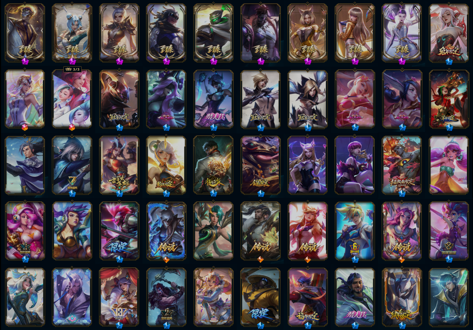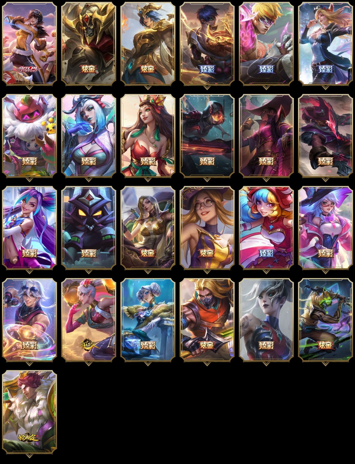 【重要皮肤】黑色玫瑰假面舞会卡特琳娜至臻 双城之战2指挥官凯特琳至臻 狼神英灵斯维因至臻 魔域梦魇泽丽至臻 天龙之子伊泽瑞尔至臻 玉剑传说琴仙子至臻 斗魂觉醒萨科至臻 墨之影武者亚索至臻 至高天奎桑提至臻 灵魂莲华易至臻 海珀利安小队X09星环灵风迦娜至臻 星之守护者辛德拉至臻 星之守护者艾克至臻 月蚀骑士赛娜至臻 幻灵战斗猫金克丝至臻 神凰行者烈羽焰凰霞至臻 魅惑女巫莫甘娜至臻 女帝黛安娜至臻 战斗学院蕾欧娜至臻 太空律动璐璐至臻 魔女乐芙兰至臻 奥术师佐伊至臻 未来战士卢锡安至臻 真实伤害赛娜至臻 灵能特工伊泽瑞尔至臻 福牛守护者菲奥娜至臻 源计划逆流塞拉斯至臻 源计划阴劫至臻 王国机神玄武盖伦至臻 神龙尊者炎龙瑟提至臻 黑夜使者凯隐至臻 神龙尊者均衡之龙沃利贝尔至臻 征服者贾克斯至臻 飞升战神潘森至臻 焰执事布兰德至臻 KDA二代卡莎至臻 KDA一代卡莎至臻 KDA卡莎2022至臻 KDA阿狸至臻 电玩女神凯特琳至臻 魅惑女巫厄运小姐至臻 魅惑女巫厄运小姐2022至臻 源计划正义艾瑞莉娅至臻 源计划正义艾瑞莉娅2022至臻 真实伤害奇亚娜至臻 真实伤害奇亚娜2022至臻 玉剑传说武剑仙至臻 玉剑传说武剑仙2022至臻 腥红之月亚托克斯至臻 腥红之月亚托克斯2022至臻 黑夜使者李青至臻 黑夜使者李青2022至臻 灰烬骑士莫德凯撒 灰烬骑士派克 灰烬杀手塞拉斯 海克斯科技瑟庄妮 海克斯科技克格莫 海克斯科技吉格斯 海克斯科技玛尔扎哈 海克斯科技波比 海克斯科技嘉文四世 海克斯科技阿利斯塔 海克斯科技拉莫斯 新卧虎藏龙贾克斯 水晶掠夺者卡兹克 永恒之森奥恩 恐惧新星德莱厄斯 零之枪骑赫卡里姆 摄魂使者薇恩 胜利女神希维尔 胜利之王泰达米尔 胜利巨口克格莫 荣誉使者玛尔扎哈 勇敢的心德莱厄斯 电玩女神厄运小姐 电玩女神阿狸 星之守护者伊泽瑞尔 玉剑传说无影 海珀利安小队Z01猎户座卢锡安 女帝格温 玉剑传说舞龙卫 星之守护者佐伊 灵能特工易 点心宝贝阿木木 龙的传人李青 天龙之子斯莫德 剪纸仙灵艾瑞莉娅 神龙烈焰金克丝 春晖神女拉克丝 你看见过我的熊猫吗安妮 南天之怒沃里克 美猴王孙悟空 紫金罗刹莫甘娜 烈焰美人薇恩 纳财大帝塔姆 神龙之翼库奇 王国机神苍狼瑟提 福牛守护者厄斐琉斯 胜利女神瑟庄妮 胜利之树茂凯 胜利机器人布里茨 胜利女神奥莉安娜 胜利枪神卢锡安 胜利之剑亚托克斯 黯然心伤阿木木 水晶玫瑰阿克尚 幽梦玫瑰伊莉丝 甜心之羽霞 甜心宝贝安妮 甜心宝贝娑娜 幽梦玫瑰辛德拉 水晶玫瑰婕拉 双城之战2微光实验室辛吉德 寒冬精灵璐璐 圣诞老人布隆 冰雪驯鹿波比 冬季仙境卡尔玛 冰封王子蒙多 冰雪女神辛德拉 魄罗骑士瑟庄妮 夺命美人卡特琳娜 平安夜女神娑娜 圣诞糖果棒厄运小姐 魅惑女巫莫甘娜 魅惑女巫奈德丽 大魔法锅布里茨 灵魂收割者索拉卡 海之歌永恩 泳池派对普朗克 泳池派对辛德拉 泳池派对奥莉安娜 泳池派对嘉文四世 泳池派对黑默丁格 泳池派对厄运小姐 泳池派对塔里克 泳池派对菲奥娜 泳池派对李青 电玩战魂赫卡里姆 送披萨的小姐姐希维尔 鸡里奥 克格汪 DWG奈德丽 FPX李青 iG卡莎 iG菲奥娜 SSG洛 SSG纳尔 SSG伊泽瑞尔 SKTT1扎克 SKTT1烬 SKTT1艾克 SKTT1阿利斯塔 SKTT1卡莉丝塔 SKTT1瑞兹 SKTT1伊莉丝 SKTT1雷克顿 SSW锤石 SSW雷恩加尔 SSW泰隆 SSW图奇 SSW辛吉德 SKTT1贾克斯 SKTT1薇恩 暗杀星奥莉安娜 暗杀星蒙多 暗杀星伊泽瑞尔 暗杀星慎 Fnatic迦娜 Fnatic库奇 Fnatic古拉加斯 Fnatic嘉文四世 Fnatic卡尔萨斯 冰雪兽纳尔 防暴士兵辛吉德 防暴天使凯尔 冠军典狱长锤石 冠军掠夺者卡兹克 冠军之血希瓦娜 冠军之隐劫 春晖神女奇亚娜 鬼影重重魔腾 胡桃夹子萨科 警用试作体K9内瑟斯 蓝色忧郁崔斯特 魅惑女巫悠米 密林猎手提莫 南瓜头费德提克 女猎手希维尔 圣诞精灵崔丝塔娜 圣诞开心鬼提莫 圣诞狂欢努努和威朗普 圣诞老人古拉加斯 圣诞驯鹿克格莫 糖果使徒费德提克 卧虎藏龙贾克斯 无头骑士赫卡里姆 喜庆之树茂凯 幸福女神乐芙兰 雪默丁格 英勇玩具兵普朗克 勇者阿狸 勇者奈德丽 征服者诺提勒斯 暗影沃里克 冠军之箭艾希 魅惑女巫菲奥娜 阿木木主人不要我了 波比的巧克力工坊 地底世界崔斯特 都铎王朝图奇 十五周年纪念希维尔 十周年纪念安妮 源代码乐芙兰 神凰行者瑞羽圣凰艾尼维亚 胜利凤凰艾尼维亚 斗魂觉醒佛耶戈 暗裔英雄盖伦 大元素使拉克丝 KDAALLOUT萨勒芬妮独立音乐人 KDAALLOUT萨勒芬妮明日新星 KDAALLOUT萨勒芬妮超级巨星 绝息圣堂洛