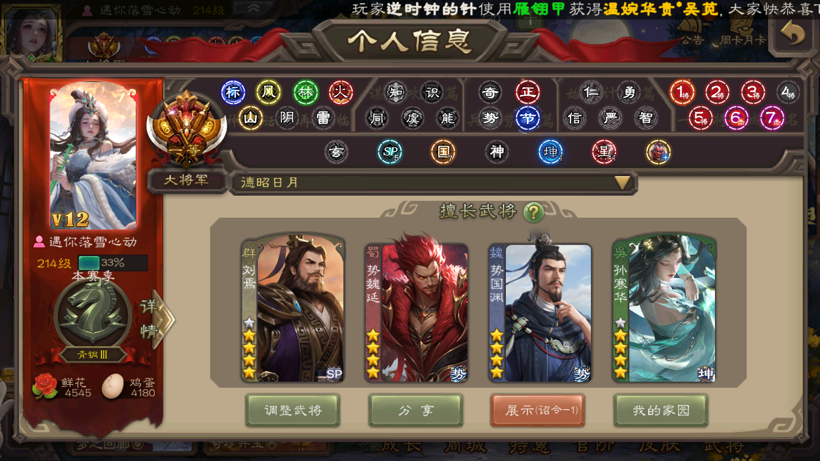 【全平台】 【有卡】三卡大将军势国渊魏延/双动刘焉神荀彧孙寒华/动神郭神司马懿神甘清河谋关羽陆郁生/文鸯太史张奋
