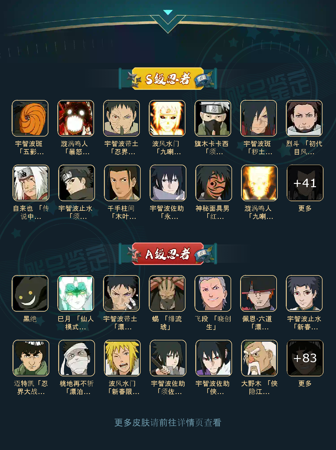 54S 92A 400忍者 宇智波止水「新春限定」/桃地再不斩「漂泊武士」/蝎 「绯流琥」/佩恩·六道 「漂泊浪客」/波风水门「新春限定」/宇智波带土 「漂泊浪客」/迈特凯「忍界大战」/烈斗 「初代目风影」/神秘面具男 「红夜之刃」/宇智波斑 「秽土转生·解」/自来也 「传说中的三忍」/波风水门「秽土转生」/千手柱间 「木叶创立」/宇智波止水 「须佐能乎」/漩涡鸣人 「九喇嘛连结」/漩涡鸣人 「暴怒·第六尾」/宇智波斑「白面具」/宇智波带土「忍界大战」/三代目风影 「秽土转生」/宇智波佐助 「永恒万花筒」/佩恩·天道「超」/旗木卡卡西 「须佐能乎」/波风水门 「九喇嘛连结」