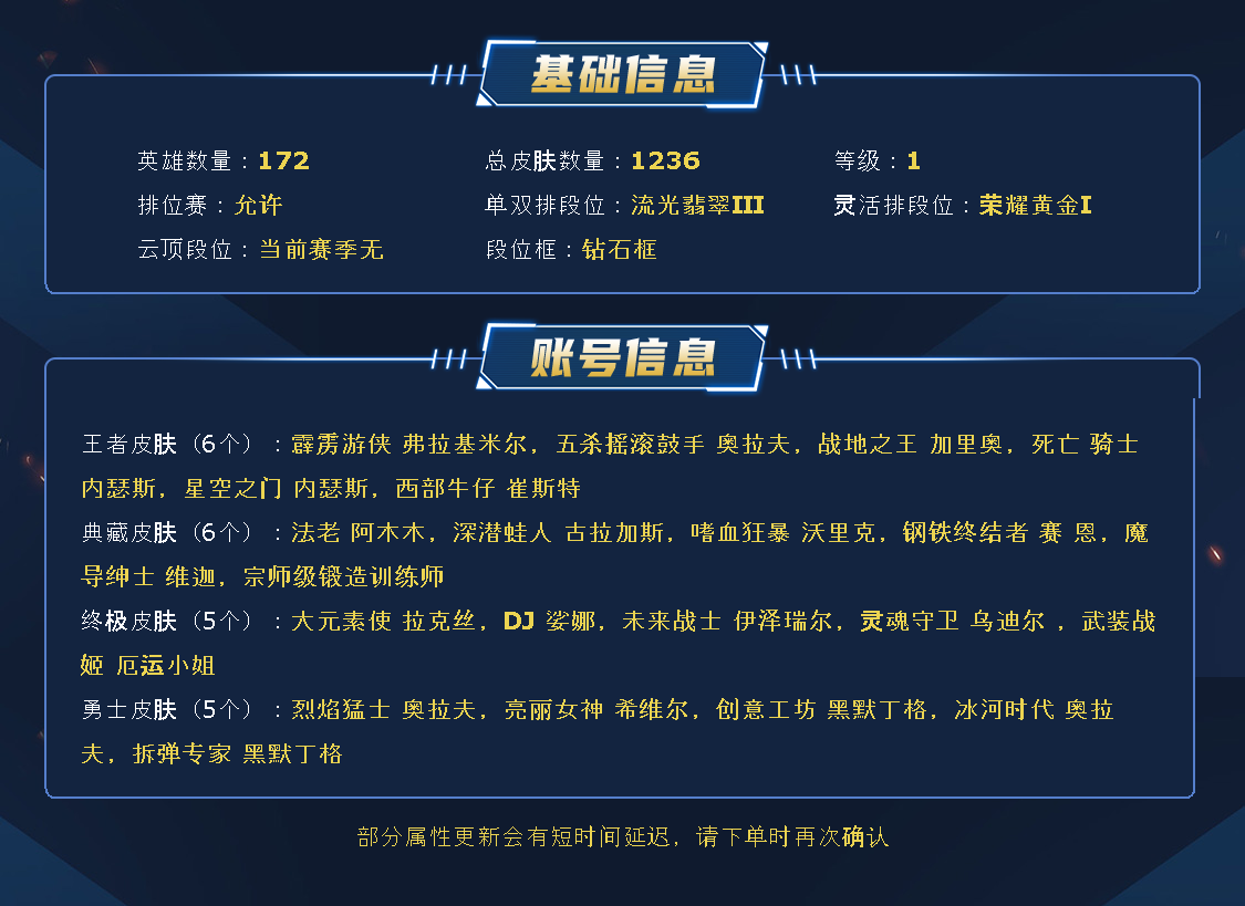 喜欢本账号请点 ☆收藏☆ 方便下次租用,谢谢光临惠顾!禁止利用账号进行开挂、使用辅助违规软件诈骗等违规操作。毁号行为涉及毁坏虚拟财产罪及计算机安全罪,请文明游戏素质游戏,让我们共建美好租号平台!
