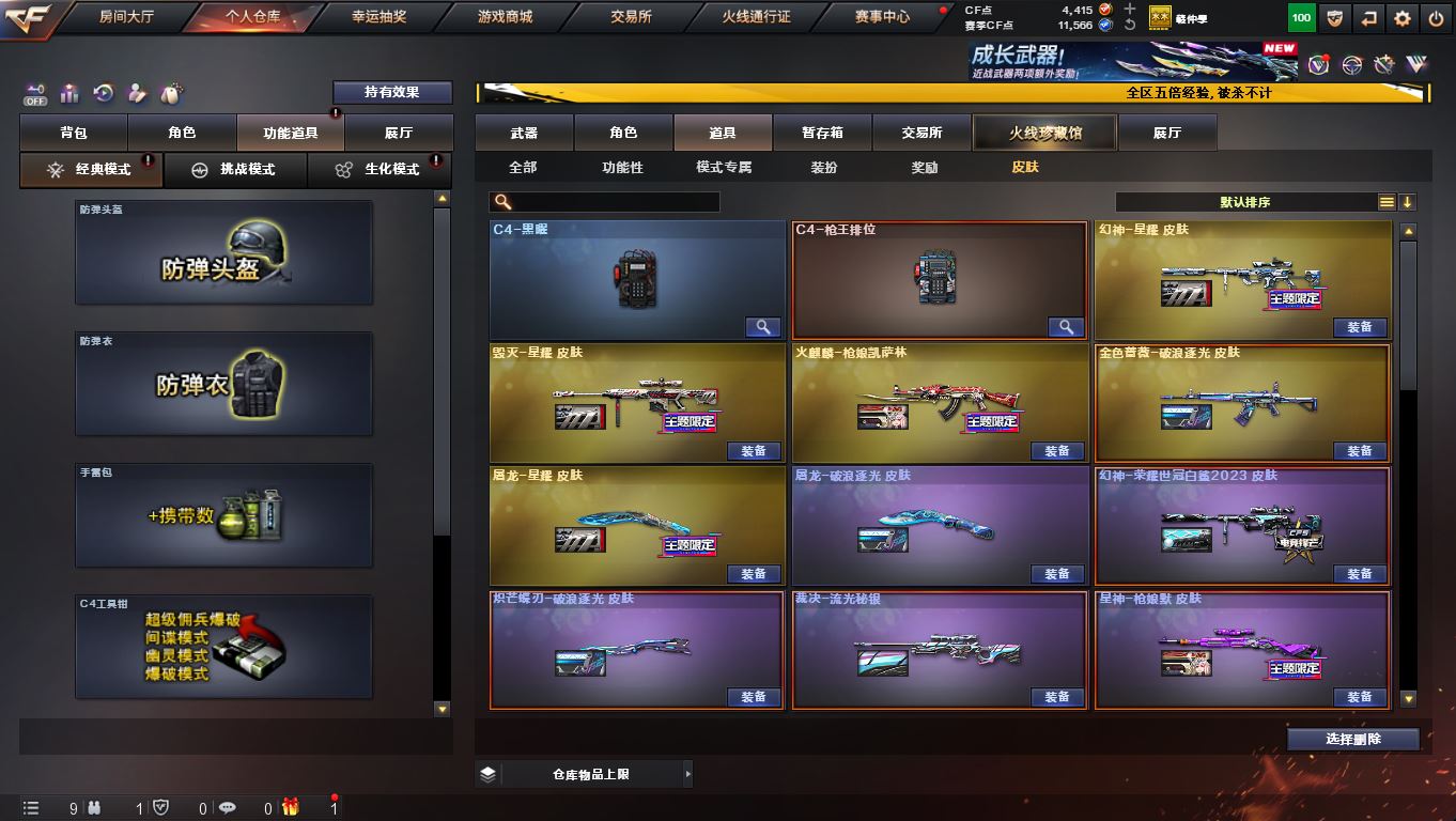 【亮点解析 幻神三件套 Kar98k-星神三件套】 【M200-幻神+音效卡+幻神-星耀+幻神-荣耀世冠白鲨2023】 【Kar98k-星神+音效卡+枪娘默】 【g36c幻影】 【ScarLight-白虎】 【QBZ03-金色蔷薇+破浪逐光】 【传说幽冥】 【裁决】 【毁灭+星耀】 【火麒麟+火麒麟-枪娘+火麒麟-even】 【雷神】 【超新星】 【5手枪 天神 柯尔特竞技荣光*2】 【10近战 屠龙*2 麒麟刺*2 炽芒蝶刃蝴蝶刀*2+破浪逐光 王者玉锋】 【四防 云悠悠 星际战将】 【Kar98k-星神音效卡 幻神音效卡】