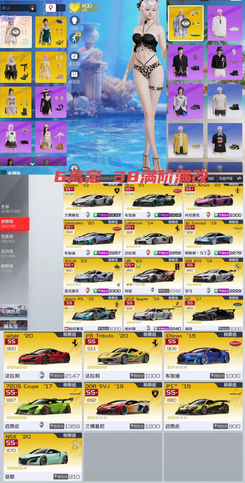 【安卓】 三端互通✨38辆满阶满改顶氪号/已充35W✨6套高定/套件很多✨满阶满改divo/毒药/白龙/雷文顿