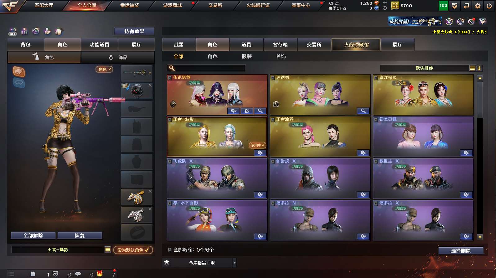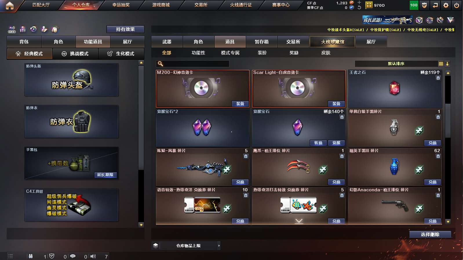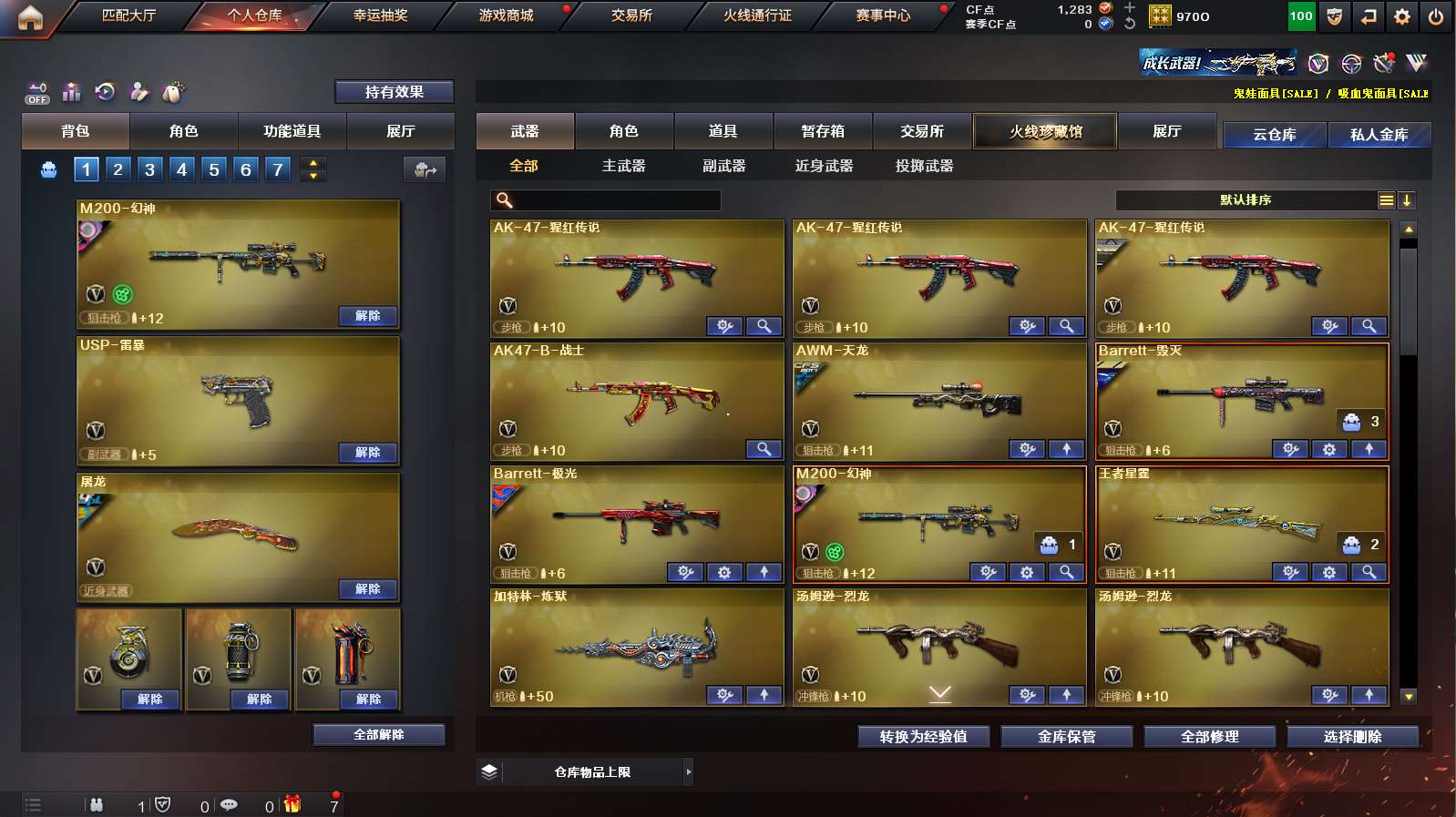 《传说影煞》《m200幻神➕幻神宠儿➕幻神ags17➕幻神音效卡》《觉醒王者星霆》《usp雷暴 cop云龙》《炽芒蝶刃》《白虎》《朱雀》《qbz金色蔷薇》《毁灭》《火麒麟》《黑龙》《雷神》《黑骑士》《2烈龙 炼狱 斯泰尔蝴蝶》《1911大黄蜂》《奇洋探员 王者魅影 王者涂鸦》《闪光护目镜》《超级背包》《a背包套装扩展券》《白虎音效卡》《毁灭ags15》