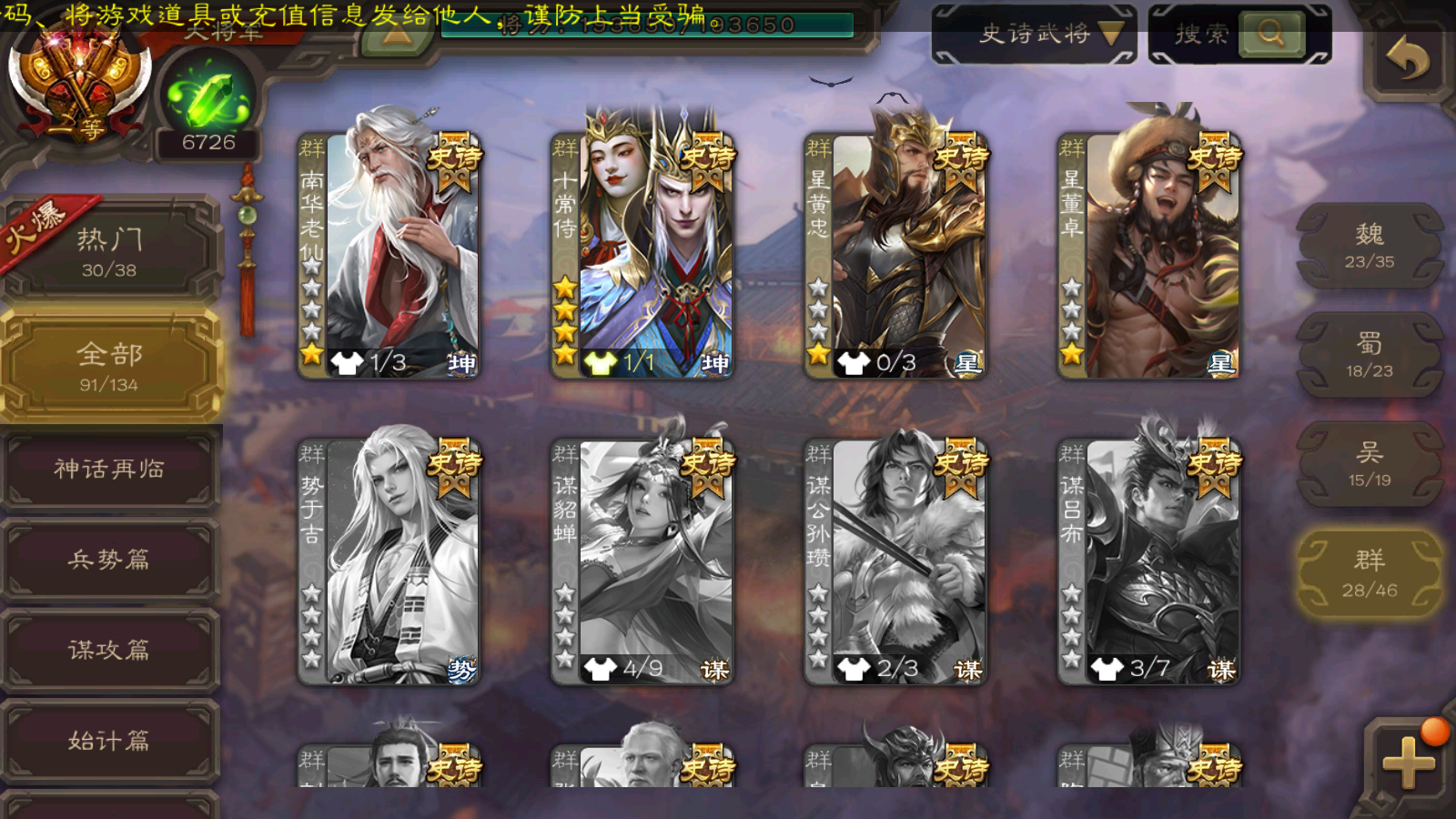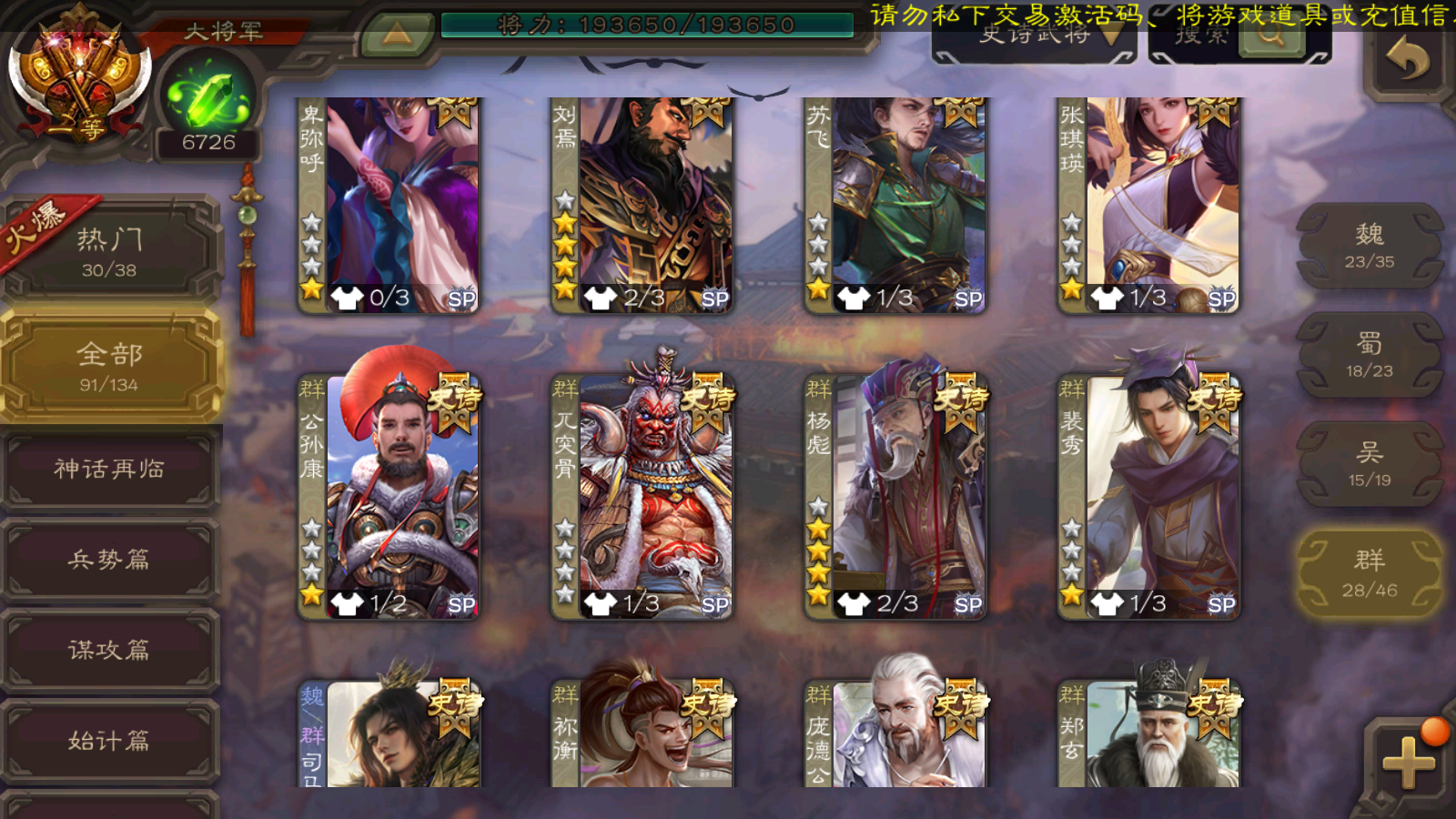 【全平台】 【有卡】三卡伪全扩大将军势国渊稀有双形谋孙策/双动刘焉神郭嘉神荀/回廊十常侍动文鸯杨彪/势太史曹髦