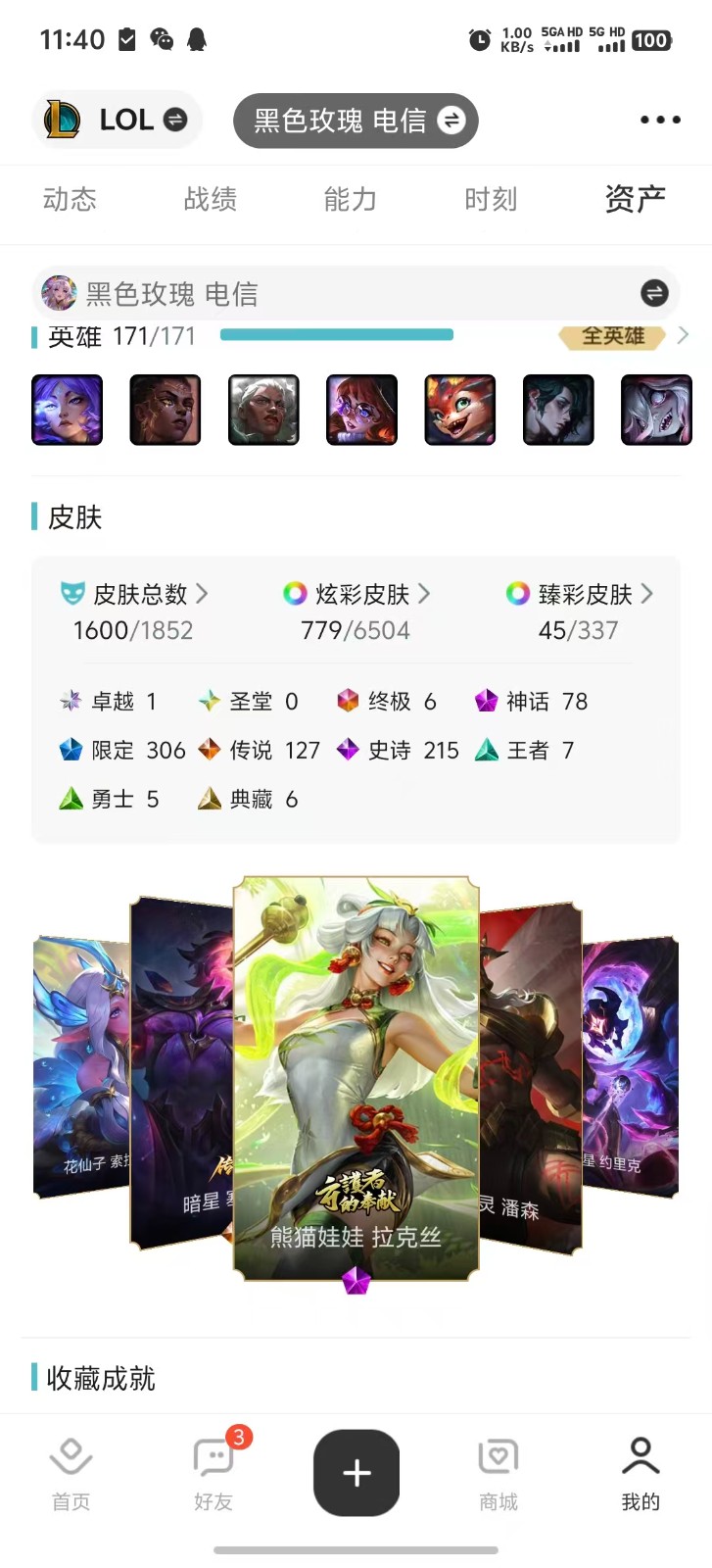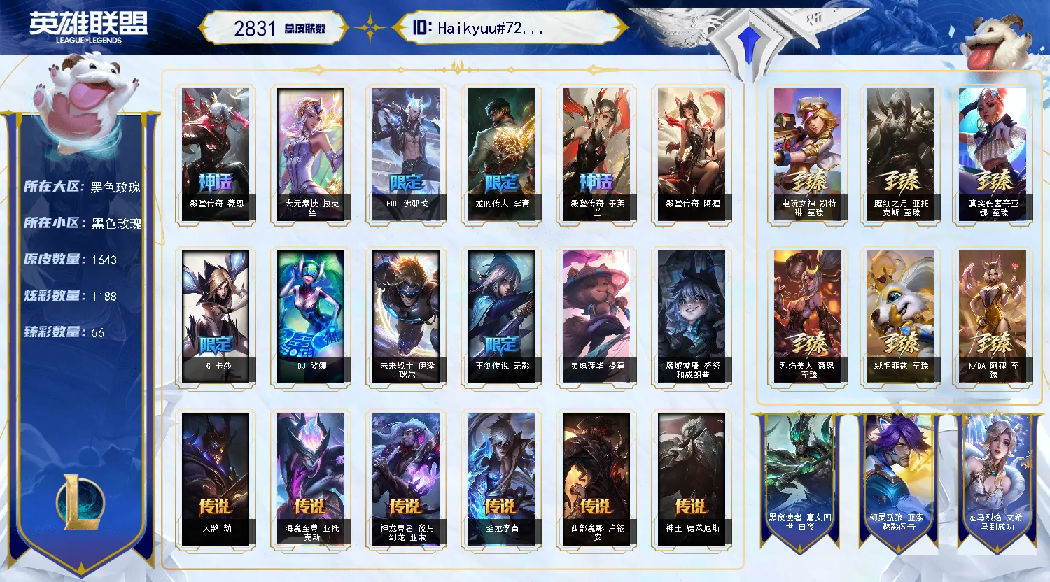 1650+1737♥️53臻彩63神话♥️慈善皮肤熊猫娃娃♥️海魔至尊幻灵女帝至高天星守
