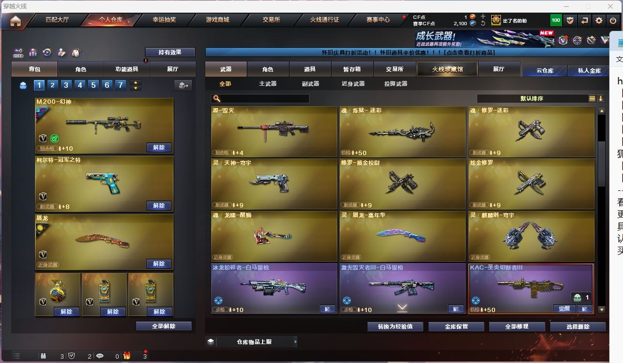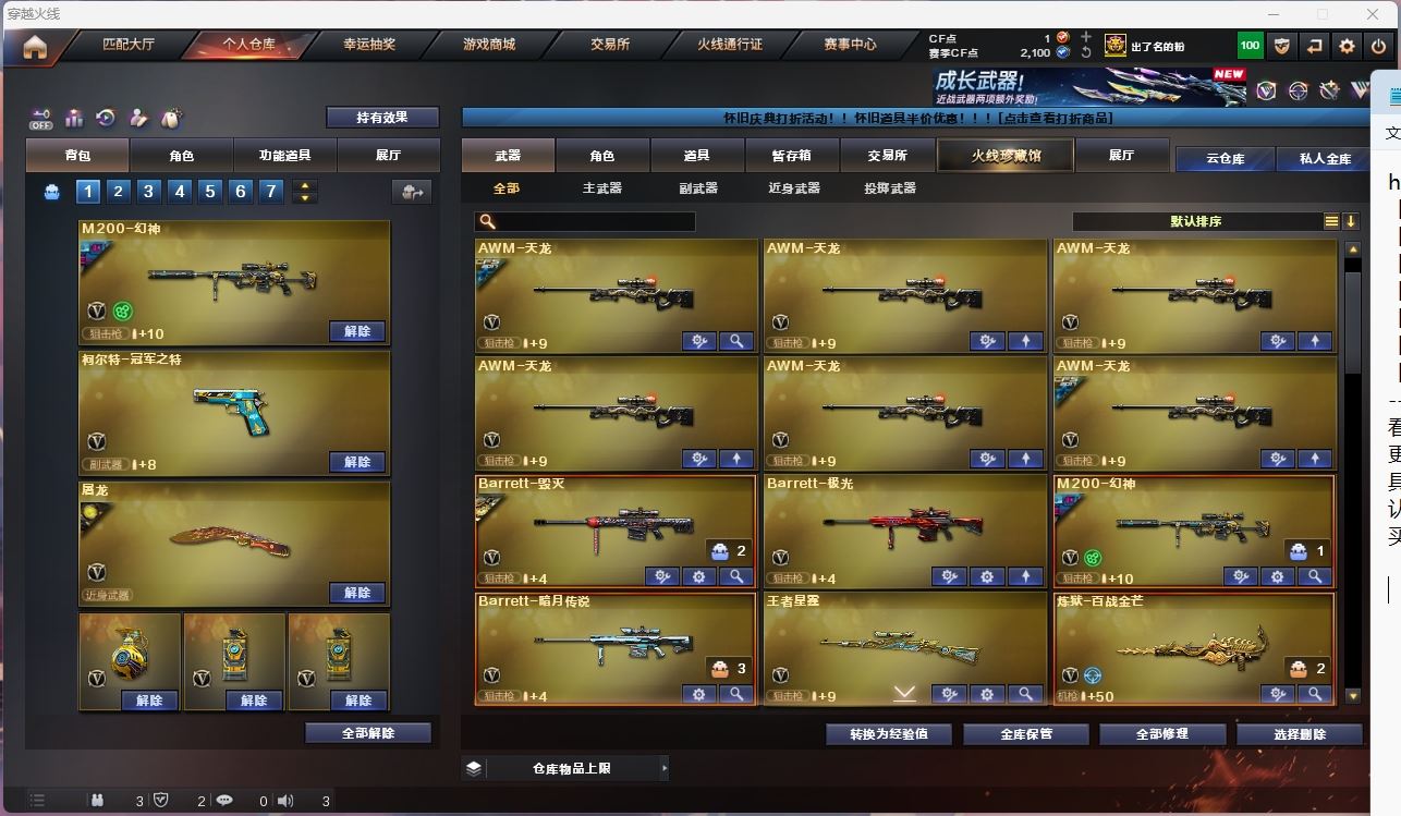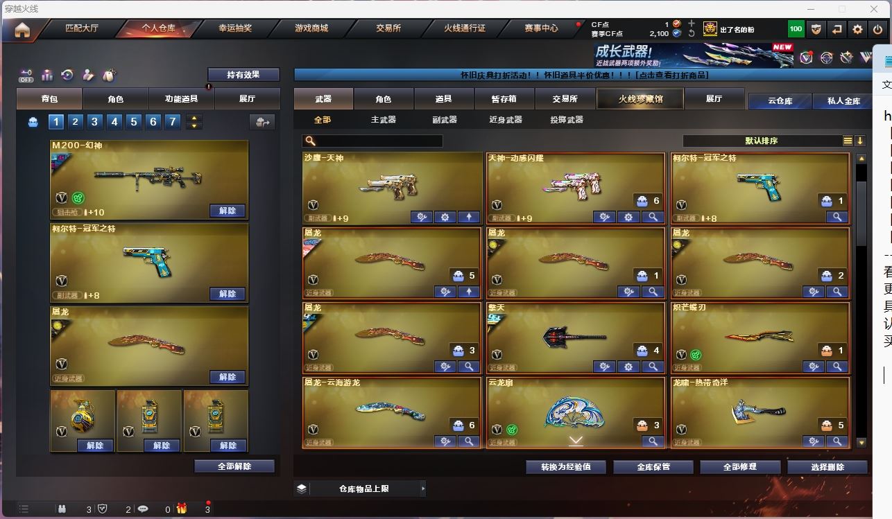 【四防传说影煞】【m200幻神+荣耀世冠白鲨+冠军之特】【王者星霆】【白虎电玩蓝兔】【qbz金色蔷薇】【火麒麟】【黑龙】【雷神+卡+荣耀之魄】【黑骑士+卡+冠军之势】【毁灭+卡+荣耀之怒】【极光】【炽芒蝶刃】 【武器:凌龙 海王 天龙 炼狱 烈龙 】 【12手枪:修罗*6 天神*6 】 【11刀具:屠龙*4 擎天 云龙扇 龙啸 王者之击 】 【雷套:幻灵雷 云龙雷*2】 【小人枪:白虎枪娘安妮 火麒麟灵狐 】 【音效卡:黑骑士音效卡 雷神音效卡 毁灭音效卡 】 【四防角色:王者沙漠玫瑰 灵动武士 】