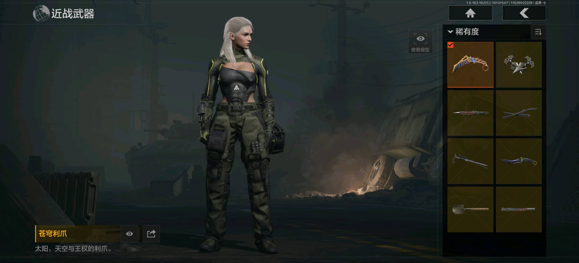 【安卓】 10M资产8刀11金枪3金衣,苍穹利爪,寒牙手刺,胜利军刀,明刀绣春,裁决,急袭弯刀,战术甲胄