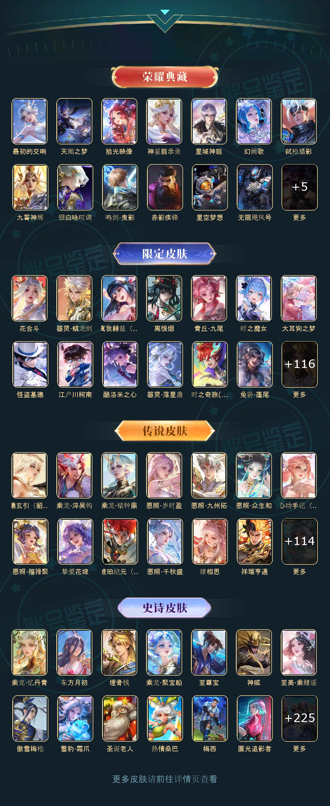 国服裴擒虎 19典藏10无双9珍品124传说貂蝉珍品无双绝版海外实名 国服裴擒虎 貂蝉珍品无双 实名: 可修改 贵族等级: V10 英雄数: 127 皮肤数: 722 荣耀水晶: 武则天,天鹅之梦,星空梦想,倪克斯神谕,无限飓风号,活力突击,杀手不太冷,大秦宣太后,鸣剑·曳影,全息碎影,星域神启,九霄神辉,赤影疾锋,银白咏叹调,幻阙歌,弑枪猎影,神鉴启示录,拾光映像,最初的交响 无双皮: 真我赫兹(瑶),神器·明辉仪,青丘·九尾,碎月剑心,小乔时之魔女,韩信群星魔术团,花合斗,离恨烟,雪境奇遇-甄姬,器灵·螭龙剑 珍品传说: 江户川柯南,怪盗基德,时之奇旅-孙策,器灵·落星盏,兔狲·蓬尾,酷洛米之心,大耳狗之梦,朽木白哉,黑崎一护 传说皮: 黄金狮子座,黄金射手座,冠军飞将,云鹰飞将,绛天战甲,黄金白羊座,猫影幻舞,久胜战神,炽阳神光,一念神魔,云霓雀翎,末日机甲-孙尚香,地狱火,仲夏夜之梦,音你心动-小乔,零号·赤焰,海洋之心,地狱之眼,飞鸢探春,音你心动-周瑜,胖达荣荣,李逍遥,乞巧织情,时之恋人-刘备,游龙清影,淬星耀世,超时空战士-狄仁杰,遇见胡