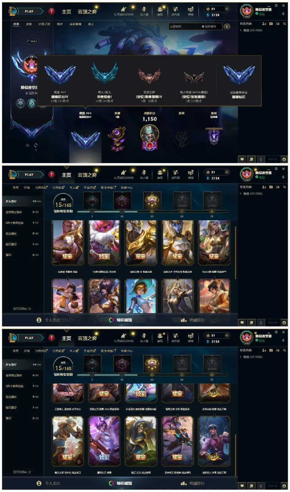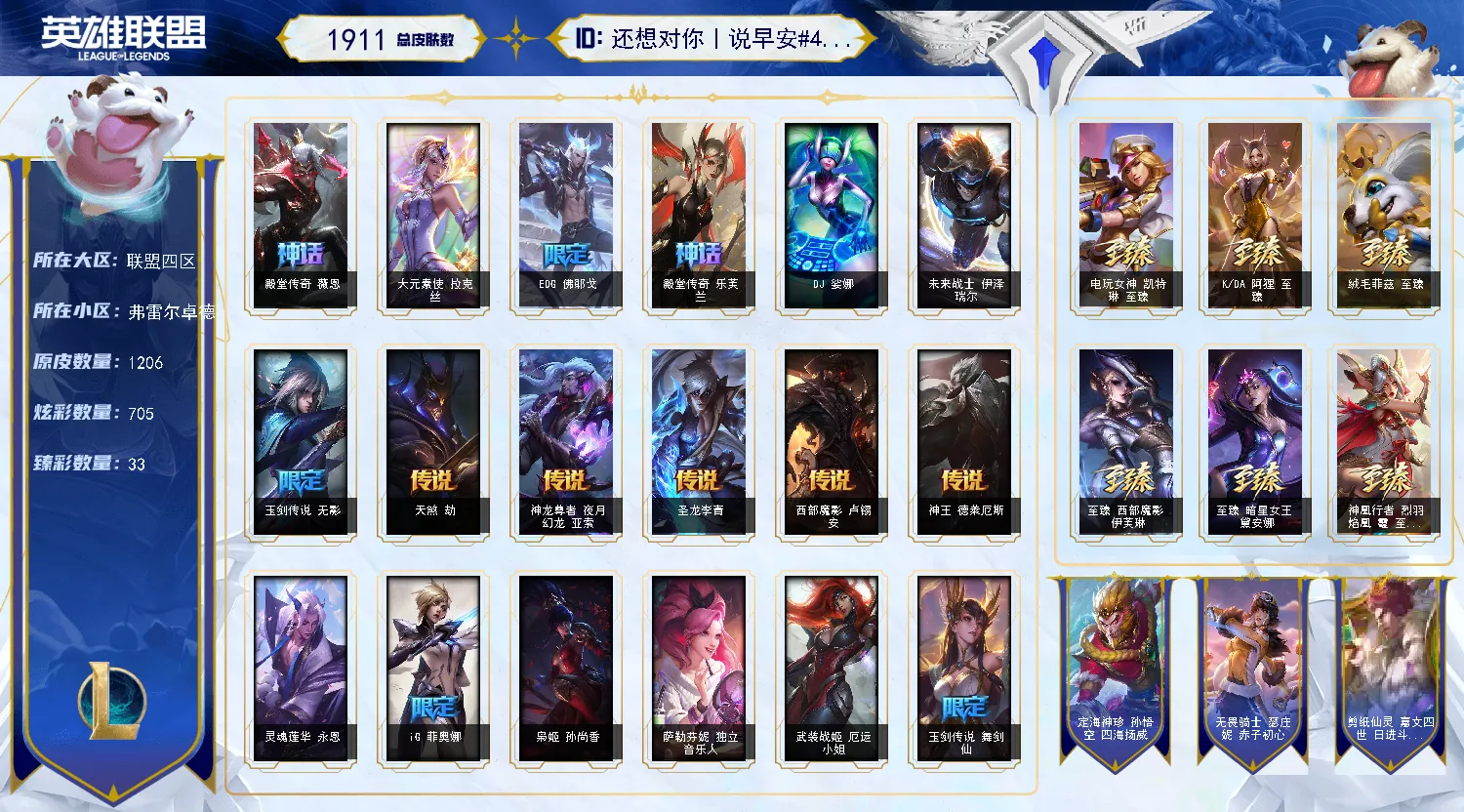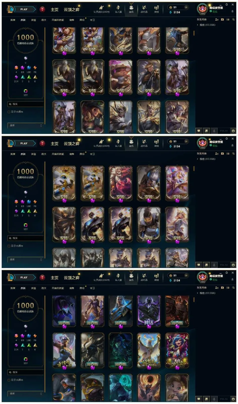 2200皮♥️90至臻50臻彩女帝天龙之子心之钢斗魂觉醒墨之影❤️至高天灵魂莲华星守云顶小小神龙亚索
