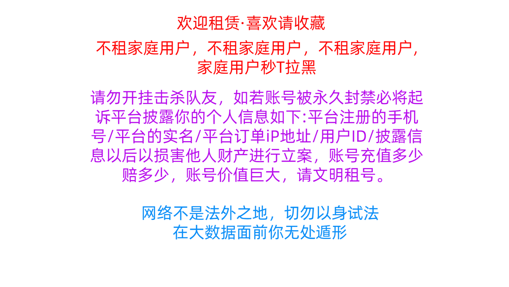 租赁押金:0元(不得使用外挂等第三方软件,违反将会扣除押金)