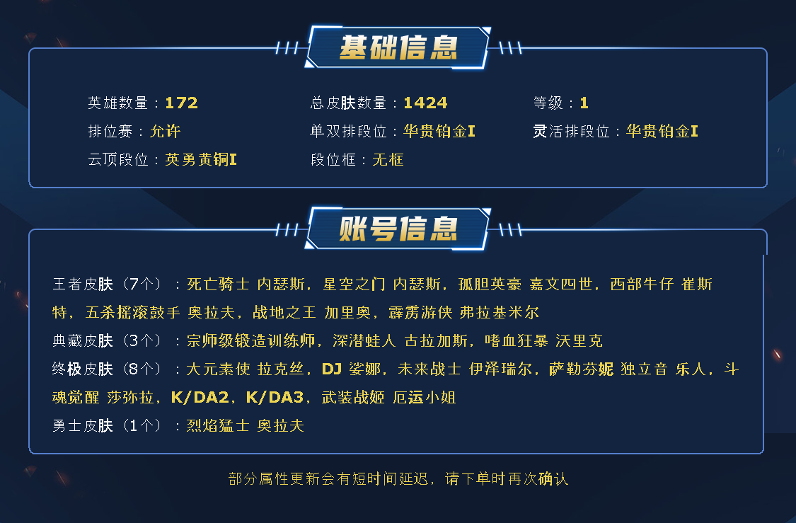 ~~喜欢记得收藏~~可排位~~1334皮全英雄~~租之前尽量查一下游戏ID,确保段位是您需要的,避免浪费您的时间~~请勿挂机逃跑故意送人头,谢谢合作,谢谢~~