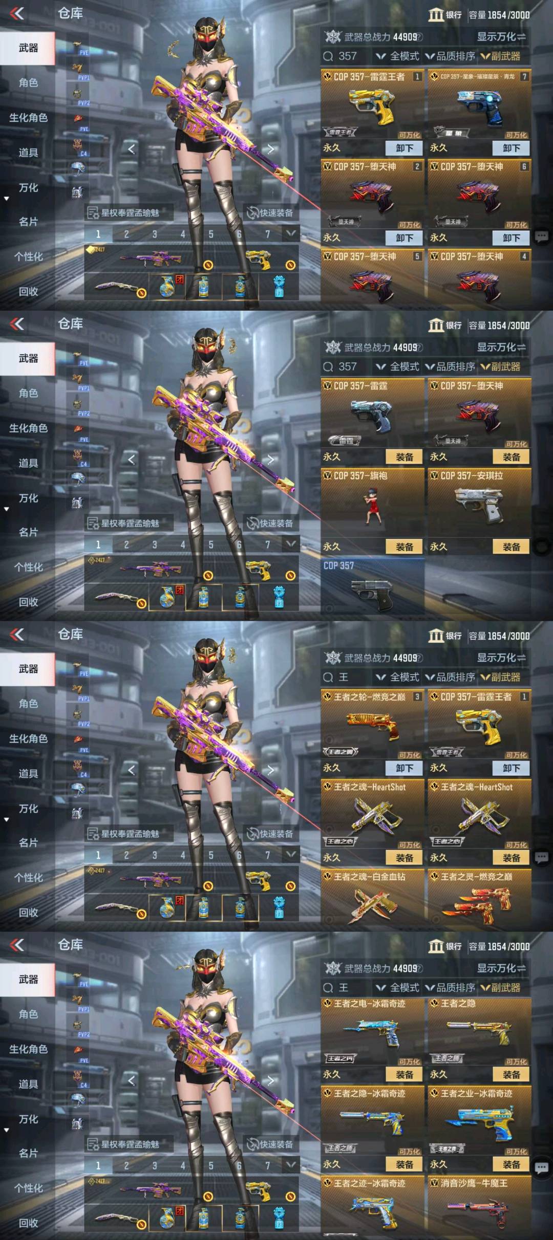 🔥副武器:❤🔥王者之魂-白金血钻❤🔥王者之魂-拉丝2把❤🔥王者之隐-冰霜奇迹❤🔥王者之隐❤🔥王者之电-冰霜奇迹❤🔥王者之轮-燃竞之巅❤🔥王者之迹-冰霜奇迹❤🔥王者之灵-燃竞之巅❤🔥COP357-雷霆王者❤🔥王者之业--冰霜奇迹❤🔥COP357-星象-星象璀璨青龙❤🔥COP357-堕天使5把❤🔥COP357-雷霆❤🔥COP357-旗袍❤🔥COP357-安琪拉❤🔥柯尔特-仲达-白露❤🔥MK23-幻神❤🔥MK23-机械纪元❤🔥USP-仁德❤🔥双持沙鹰-元让❤🔥沙鹰-孟德❤🔥蟒蛇-奉先❤🔥蟒蛇-妙才-过载❤🔥双管猎枪-文远❤🔥双管猎枪-威候❤🔥等省略