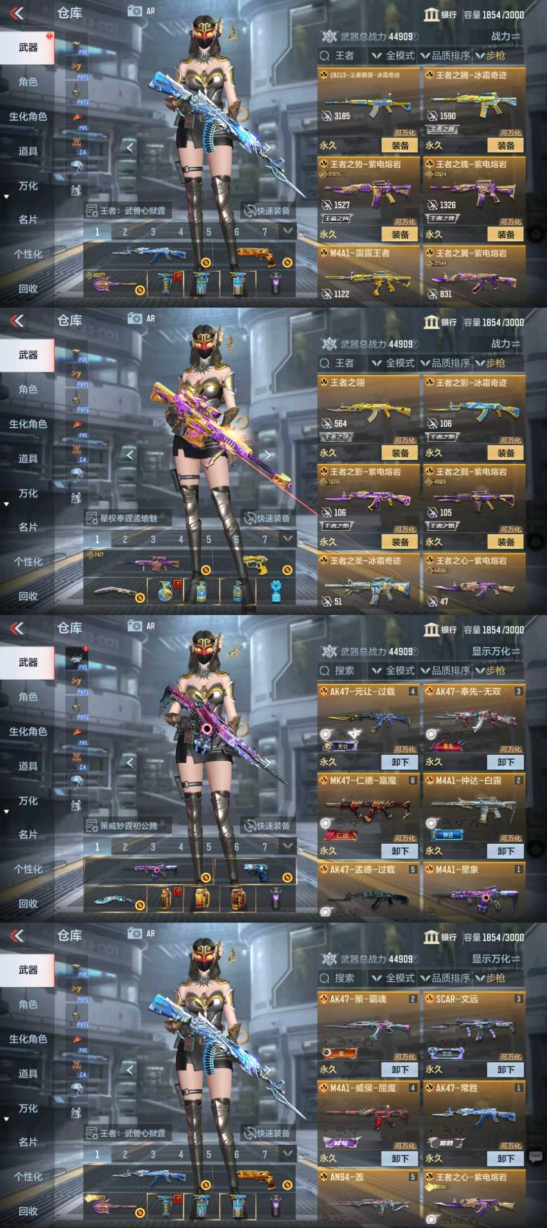 🔥主流步枪:❤🔥王者之魄-紫电熔岩❤🔥王者之魄-白金血钻❤🔥王者之魄-冰霜奇迹❤🔥王者之心-紫电熔岩❤🔥王者之心-拉丝❤🔥王者之心-白金血钻❤🔥王者之影-紫电熔岩❤🔥王者之影-冰霜奇迹:❤🔥王者之戳-紫电熔岩:❤🔥王者之戳-燃竞之巅:❤🔥王者之戳-冰霜奇迹❤🔥王者之势-紫电熔岩❤🔥王者之势-燃竞之巅❤🔥王者之势-冠军EP❤🔥王者之翼-紫电熔岩❤🔥王者之翼-燃竞之巅❤🔥王者之翼-冰霜奇迹:❤🔥王者之武-紫电熔岩❤🔥王者之武-燃竞之巅❤🔥王者之圣-冰霜奇迹❤🔥王者之兽-冰霜奇迹❤🔥王者之腾-冰霜奇迹❤🔥QBZ03-王者蔷薇-冰霜奇迹❤🔥王者之翎❤🔥M4A1-雷霆王者❤🔥AK47-元让-过载❤🔥M4A1-星象❤🔥M4A1-仲达-白露❤🔥M4A1-仲达-过载❤🔥AK47-奉先-无双❤🔥AK47-孟德-过载❤🔥MK47-仁德-赢魔❤🔥81式-瑜-龙腾之力❤🔥AK47-策-霸魂❤🔥SCAR-文远❤🔥M4A1-威候-屈魔❤🔥M4A1-游骑兵-寒霜❤🔥M4A1-游骑兵-紫魇❤🔥M4A1-游骑兵-KZ❤🔥81式-机械纪元❤🔥81式-光明之神-三足金乌❤🔥81式-光明之神千变❤🔥81式-阿波罗❤🔥其他的还有很多就不写了