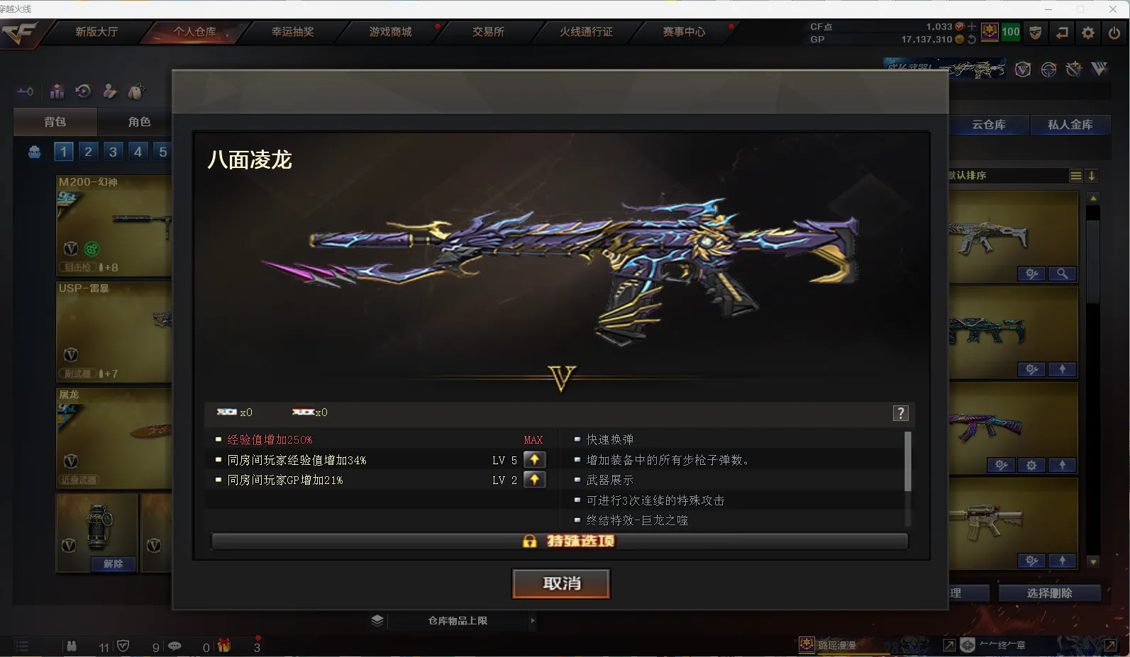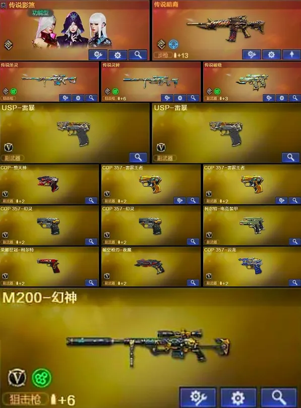 副武器拉满:2USP雷暴/COP堕天神/破空枪刃/柯尔特-电竞装甲/2COP幻灵/2COP雷霆王者/COP 357-云龙/柯尔特-荣耀世冠