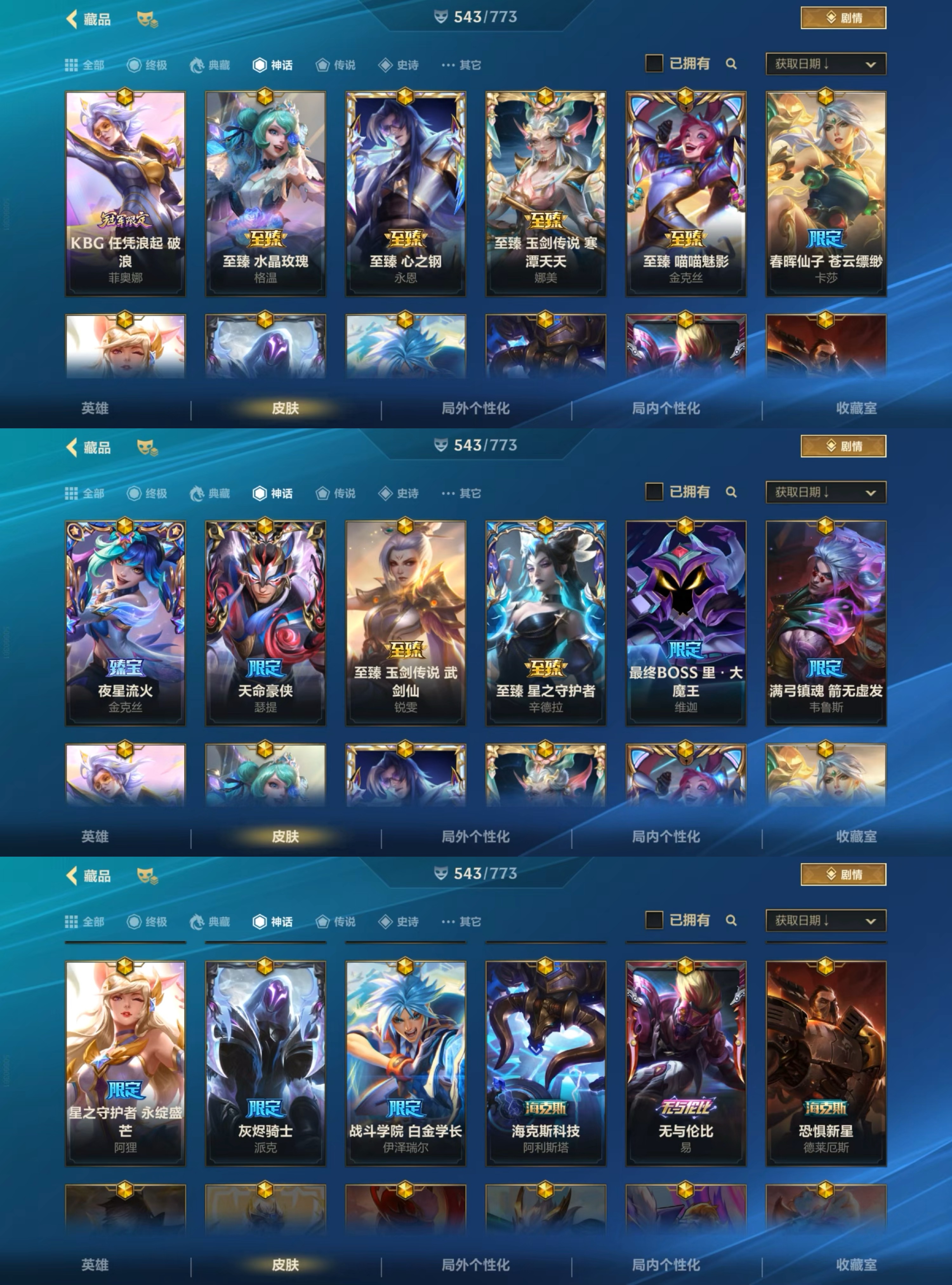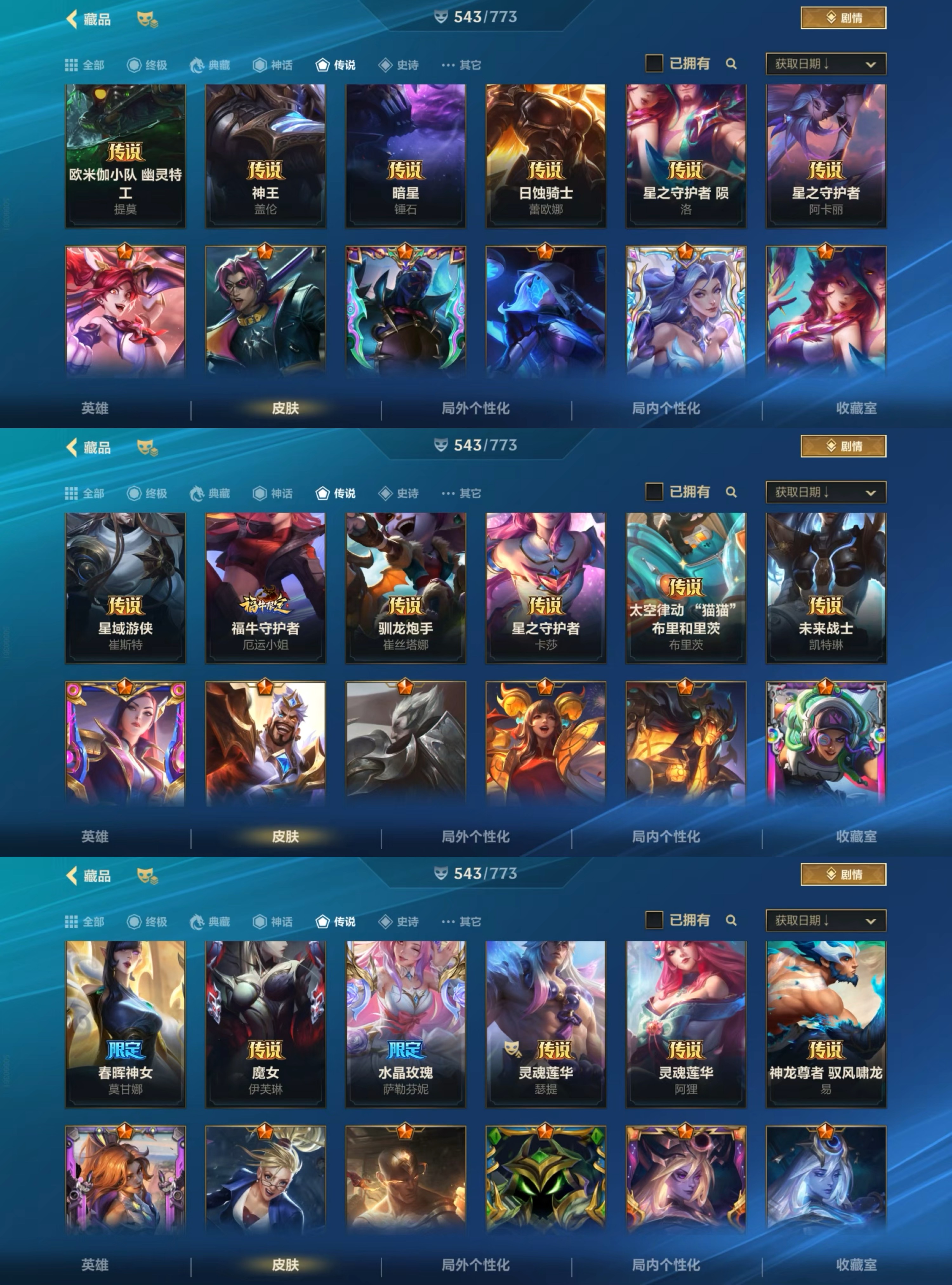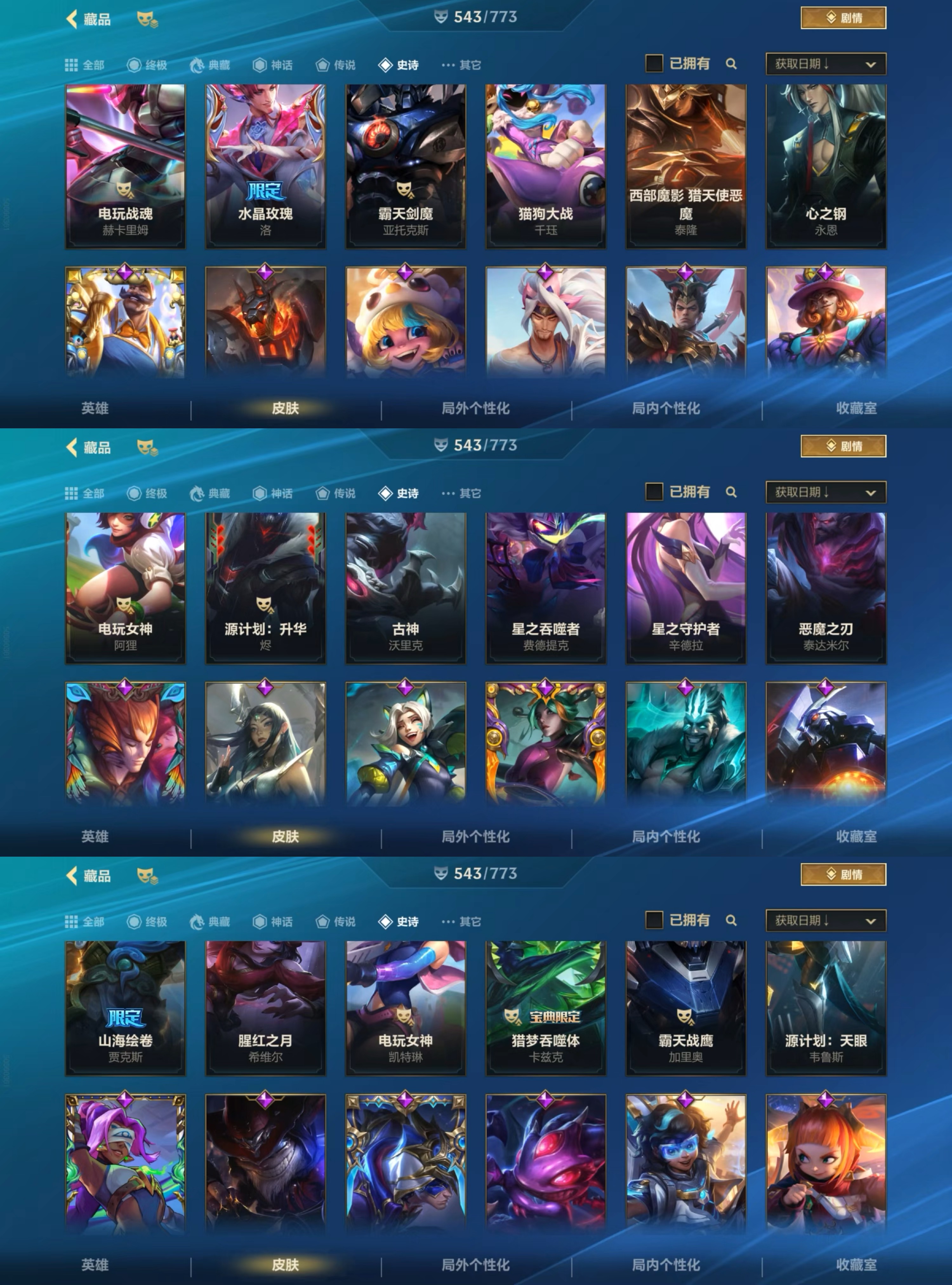 【安卓】 【允许排位】543皮肤🐲终极永恩⚡️典藏瑟提🌟18神话❤️61传说🐬318史诗🌟水晶格纹