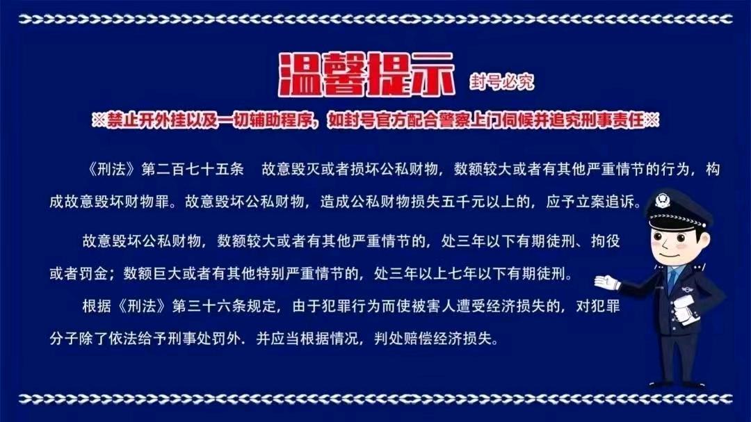 禁止挂机骂人退游戏开挂行为,严重者拉黑报警起诉处理