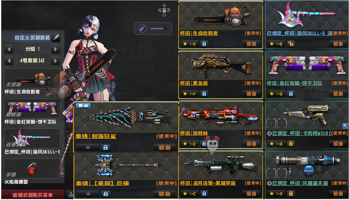 次紫钻●蛇神新四件套双次元万钧神威夙夜狼雷恶魔神●九星光束套9星天巡套●闪电套●重铸鲨鱼巨锤