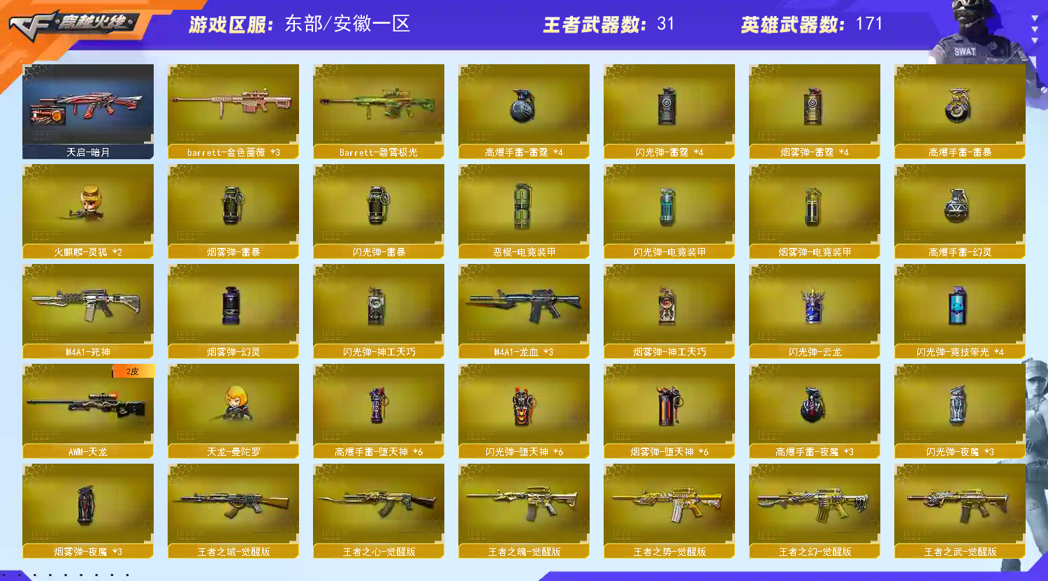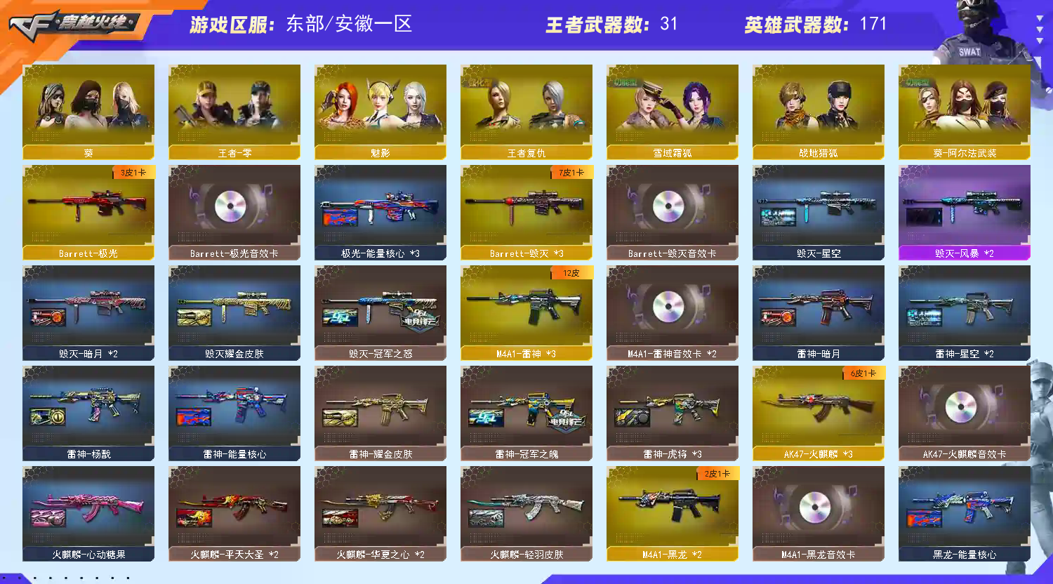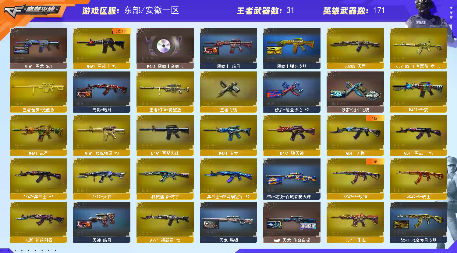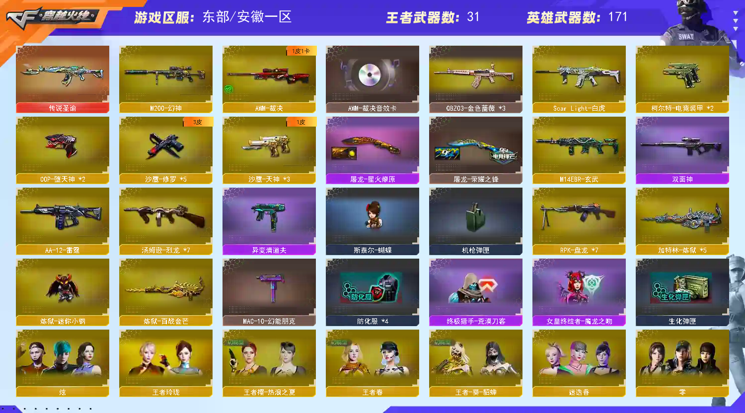 【传说圣谕】【Knife冠军之刃】【M200幻神】【裁决+裁决百城联赛+裁决音效卡】【双面神】【王者幻神 王者蔷薇 王者之力 王者之怒 王者之心 王者之城 王者之翼 王者之影 qbz03-王者蔷薇 王者之幻 王者之魄 王者之势 王者之武 王者之烈 王者之魄 王者之锋 王者之击】【四神兽】【ScarLing-白虎】【m4青龙】【M14EBR-玄武】【HK417-朱雀】【qbz03-天罚】【裁决三件套 极光三件套 毁灭三件套 雷神三件套 黑龙三件套 火麒麟三件套 黑骑士三件套】【qbz金色蔷薇】【盘龙*7+炼狱百战金笀+百战金笀音效卡+麒麟刺百战金笀+炼狱小刚】【烈龙*7+斯太尔蝴蝶+变异清道夫】【COP堕天神】【COP堕天神】【科尔特-电竞装甲】【腐蚀激光-超越MaX】【机甲撕裂者3】【激光毁灭者3白马银枪】【KAC-圣炎切割者3】【AA12-擎天柱3】【VEPR-12-金魔】【神圣爆裂者3】【试炼破坏者3】【黄金猫猫手套】【剧毒匕首-毒蝰】【王者葵貂蝉】【王者春】【蛇隐宗】【葵-阿尔法武装】【迷迭香】【葵】【炫】【魅影】【王者樱-热浪之夏】【王者复仇】【王者玲珑】【职业选手+白鲨语音包】【圣泉猎手-炽雪】【终极猎手-荒漠刀客】【湮灭之柱】【魔龙之吻】【黑桃战神】【裁决音效卡 火麒麟音效卡 极光音效卡 雷神音效卡 毁灭音效卡 黑龙音效卡】【冠军之魄 冠军之怒 冠军之魂 华夏之心 虎将 荣耀之锋 传奇白鲨】