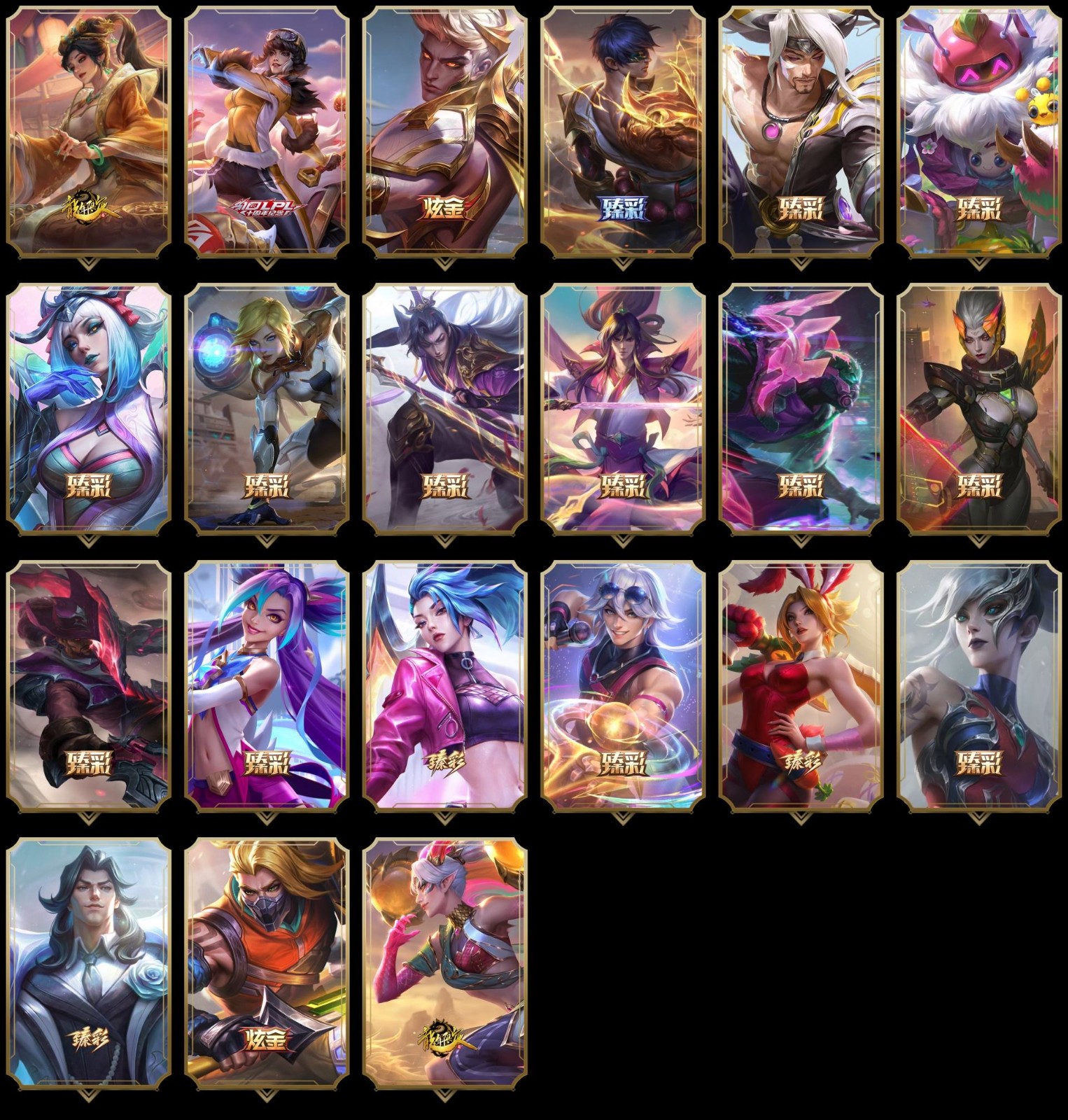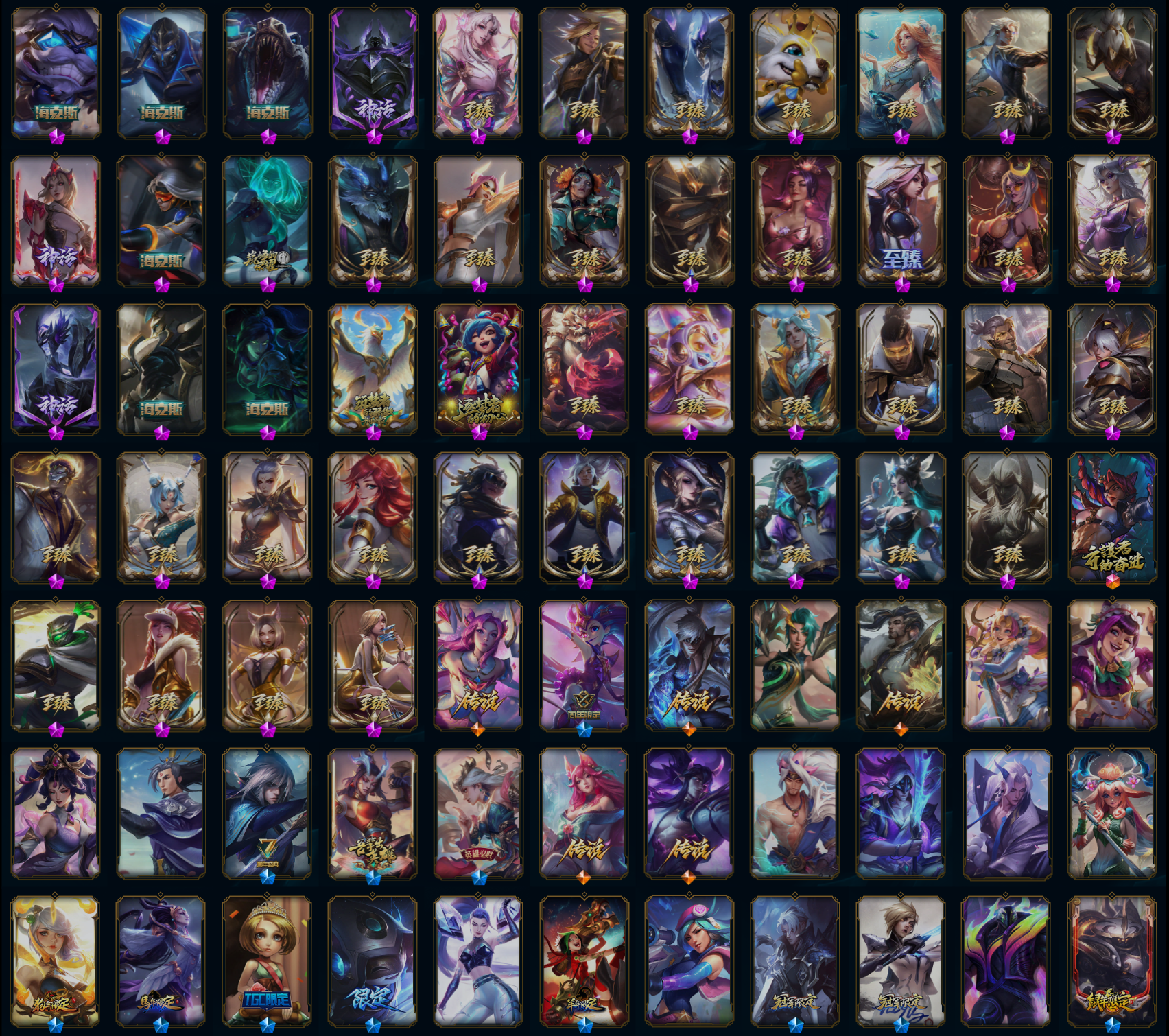 【重要皮肤】机神玄武盖伦至臻 灵魂莲华拉克丝至臻 西部魔影伊芙琳至臻 青花瓷千珏至臻 天龙之子伊泽瑞尔至臻 魂蔷薇烈娜塔至臻 玉剑传说琴仙子至臻 花仙使者卡特琳娜至臻 绝息圣堂厄运小姐至臻 剪纸仙灵希维尔至臻 北极星使者沃里克至臻 星之守护者辛德拉至臻 星之守护者艾克至臻 海之歌萨勒芬妮至臻 太空律动璐璐至臻 未来战士卢锡安至臻 真实伤害亚索至臻 真实伤害赛娜至臻 灵能特工伊泽瑞尔至臻 福牛守护者菲奥娜至臻 源计划逆流塞拉斯至臻 黑夜使者凯隐至臻 神龙尊者均衡之龙沃利贝尔至臻 征服者贾克斯至臻 焰执事布兰德至臻 KDA阿狸至臻 KDA伊芙琳至臻 KDA阿卡丽至臻 战斗学院拉克丝至臻 烈焰美人薇恩至臻 烈焰美人薇恩2022至臻 源计划正义艾瑞莉娅至臻 源计划正义艾瑞莉娅2022至臻 绒毛菲兹至臻 绒毛菲兹2022至臻 玉剑传说武剑仙至臻 玉剑传说武剑仙2022至臻 腥红之月亚托克斯至臻 腥红之月亚托克斯2022至臻 黑夜使者李青至臻 黑夜使者李青2022至臻 灰烬骑士莫德凯撒 灰烬杀手塞拉斯 海克斯科技雷克顿 海克斯科技吉格斯 海克斯科技阿木木 水晶圣骑艾希 零之枪骑赫卡里姆 摄魂使者薇恩 新创战纪希维尔 胜利剑圣易 胜利女神娑娜 胜利之王泰达米尔 胜利巨口克格莫 舞会公主安妮 创星之灵璐璐 钢铁军团拉克丝 玉剑传说无影 玉剑传说神机花火 玉剑传说无劫 玉剑传说舞龙卫 玉剑传说翼剑仙 星之守护者佐伊 天龙之子斯莫德 神龙烈焰金克丝 碧玉之牙卡西奥佩娅 春晖神女拉克丝 广寒仙子嫦娥 胜利女神瑟庄妮 胜利机器人布里茨 胜利女神奥莉安娜 胜利枪神格雷福斯 胜利枪神卢锡安 胜利之剑亚托克斯 觅心之翼奎因 水晶玫瑰斯维因 北极星猎人斯维因 雪球也能爆炸吉格斯 圣诞老人德莱文 冬季仙境卡尔玛 魄罗骑士瑟庄妮 死亡誓约劫 海之歌艾希 海之歌奈德丽 海之歌永恩 海之歌泽丽 泳池派对格雷福斯 克格汪 制胜金靴李青 EDG厄斐琉斯 DWG凯南 iG菲奥娜 SSG洛 SKTT1奥拉夫 SKTT1阿利斯塔 SKTT1伊莉丝 SKTT1雷克顿 SSW图奇 SKTT1贾克斯 SKTT1李青 暗杀星奥莉安娜 暗杀星蒙多 暗杀星伊泽瑞尔 Fnatic库奇 Fnatic卡尔萨斯 冰雪节辛吉德 防暴机器人布里茨 钢铁之翼艾尼维亚 冠军之矛卡莉丝塔 鬼影森森茂凯 鬼影重重魔腾 海贼瑞兹 蓝色忧郁崔斯特 南瓜头费德提克 女猎手希维尔 圣诞狂欢基兰 圣诞老人古拉加斯 圣诞玩偶波比 圣诞驯鹿克格莫 外星装甲库奇 无头骑士赫卡里姆 喜庆之树茂凯 邪恶圣诞老人维迦 英勇玩具兵普朗克 永恒之森乐芙兰 征服者韦鲁斯 暗影沃里克 魅惑女巫辛德拉 阿木木主人不要我了 波比的巧克力工坊 都铎王朝图奇 十周年纪念安妮 源代码乐芙兰 神凰行者瑞羽圣凰艾尼维亚 胜利凤凰艾尼维亚 机神白虎贾克斯 斗魂觉醒莎弥拉 灵魂守卫乌迪尔 绝息圣堂洛