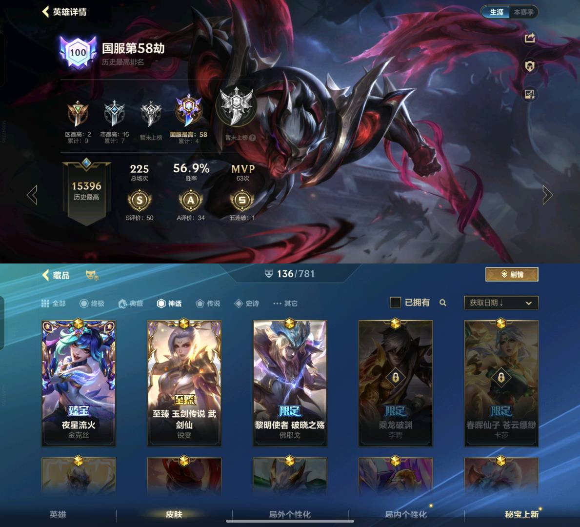 【安卓】 【允许排位】开黑装逼首选✨历史传说前一千✨典藏劫✨国六金克丝✨国服劫✨至臻剑仙瑞文✨黎明佛耶戈✨超多神话传说限定