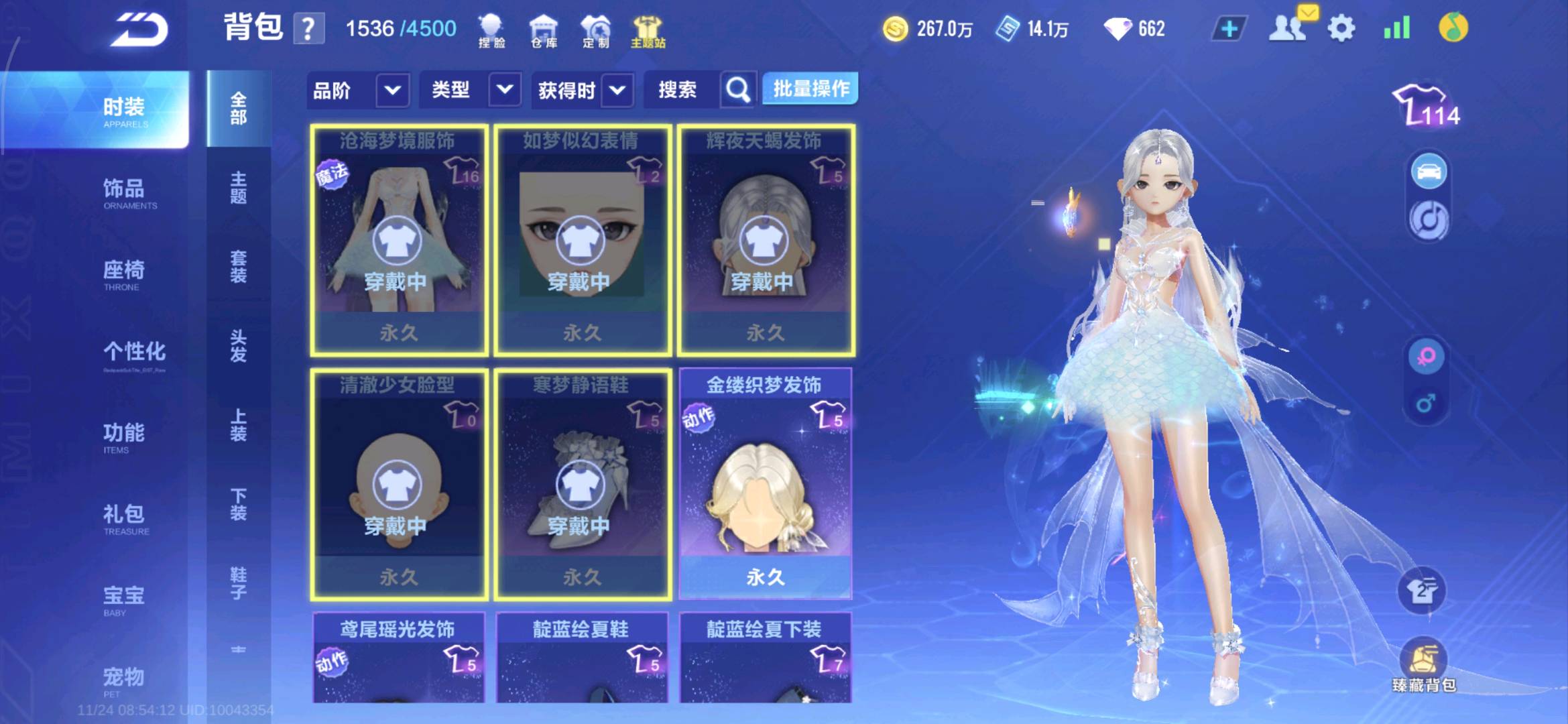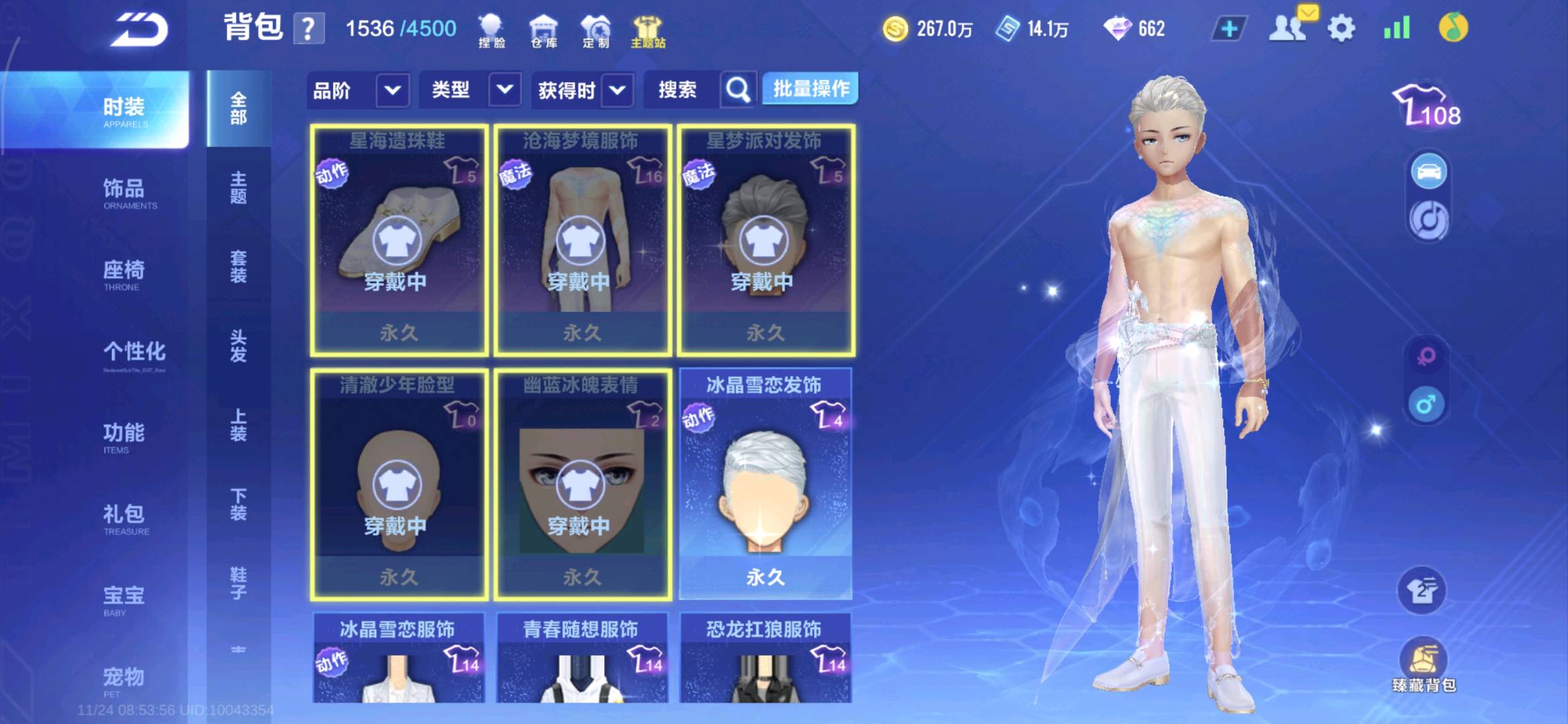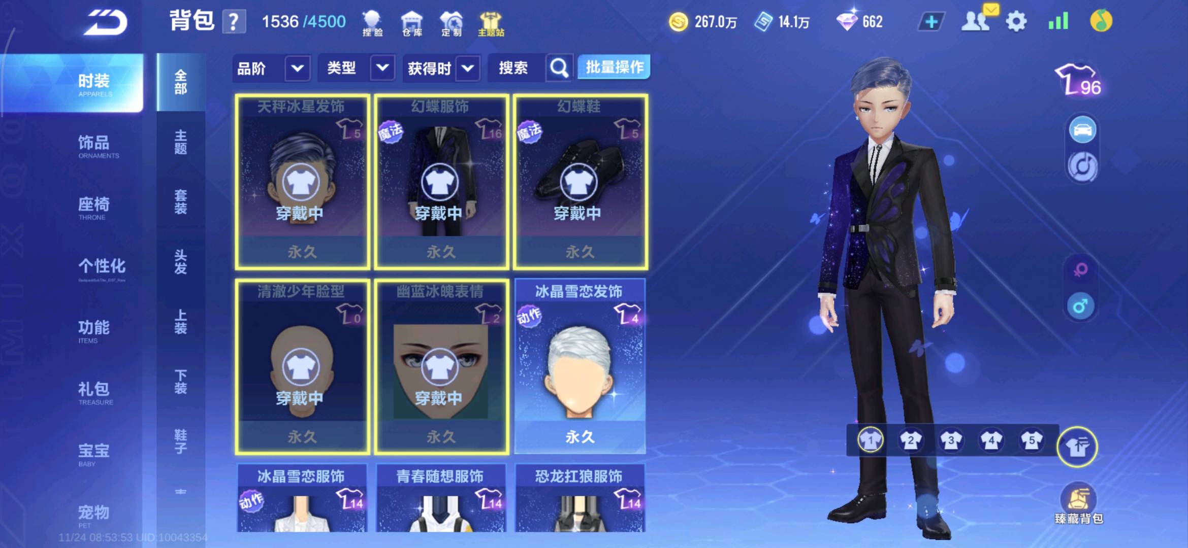 等级82级 魅力值23.8w 男魔法装7 女魔法装3 时装多样化