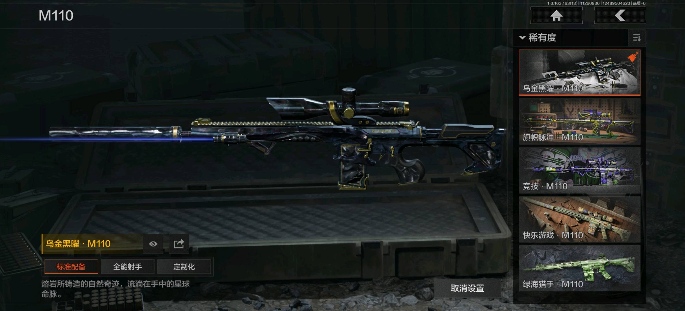 骑士之剑VSS,乌金黑曜M110,高塔之内VSS,玄戈梨花VSS,白狼连队VSS,战术大师SVDS,典礼武备MK14,骑士之剑MK14,竞技M110,快乐游戏M110,鱼跃丹青QBU191;