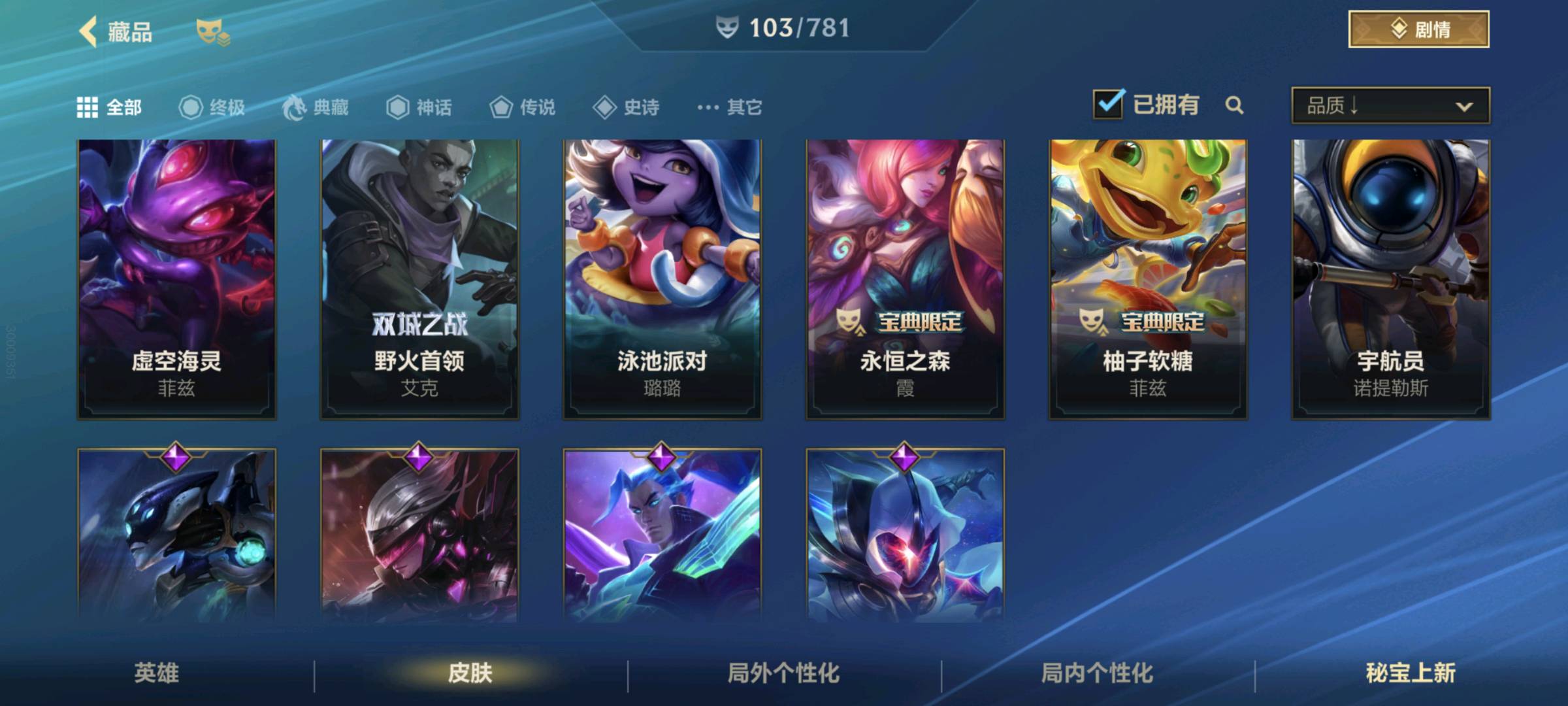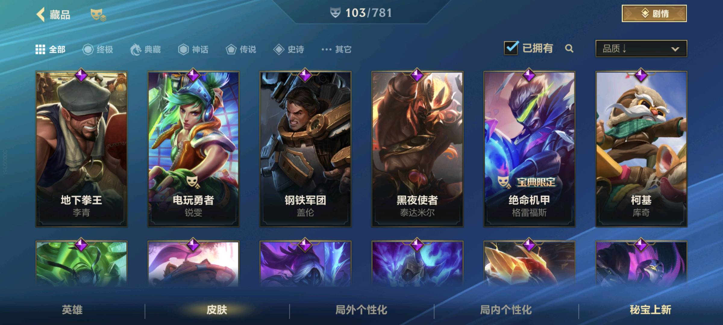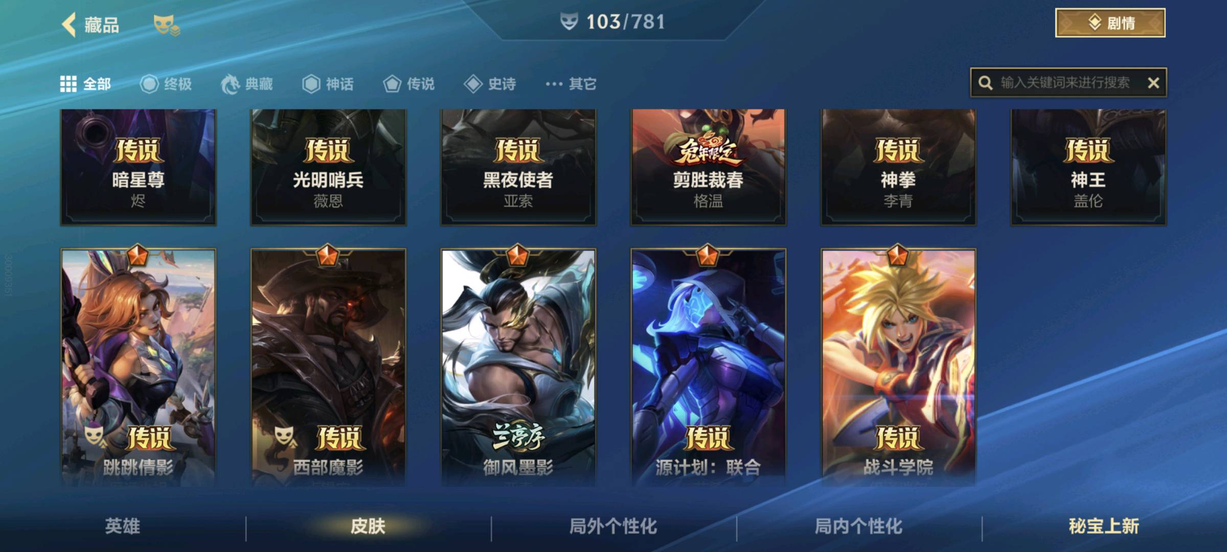 【安卓】 【允许排位】可排位 带妹号 103皮肤 阿狸至臻 传说11 史诗46 黑夜 兰亭序 神拳 格温兔年 西部