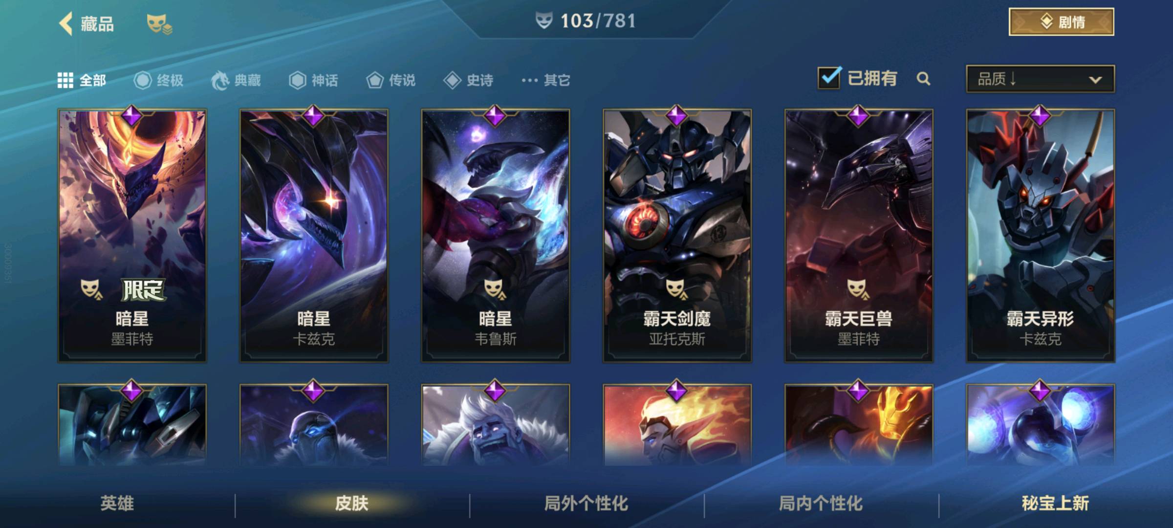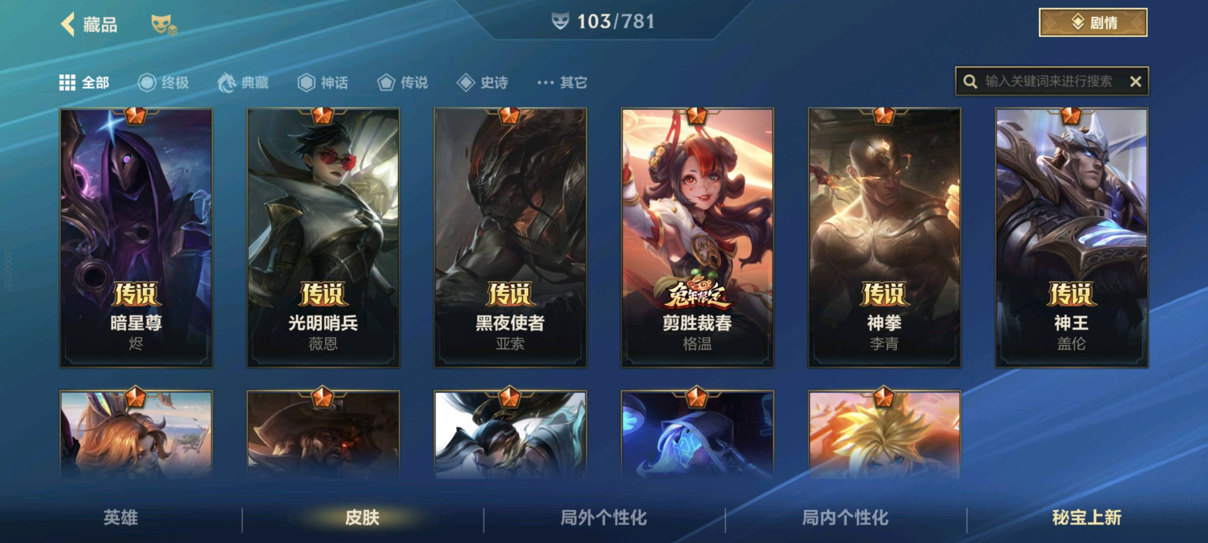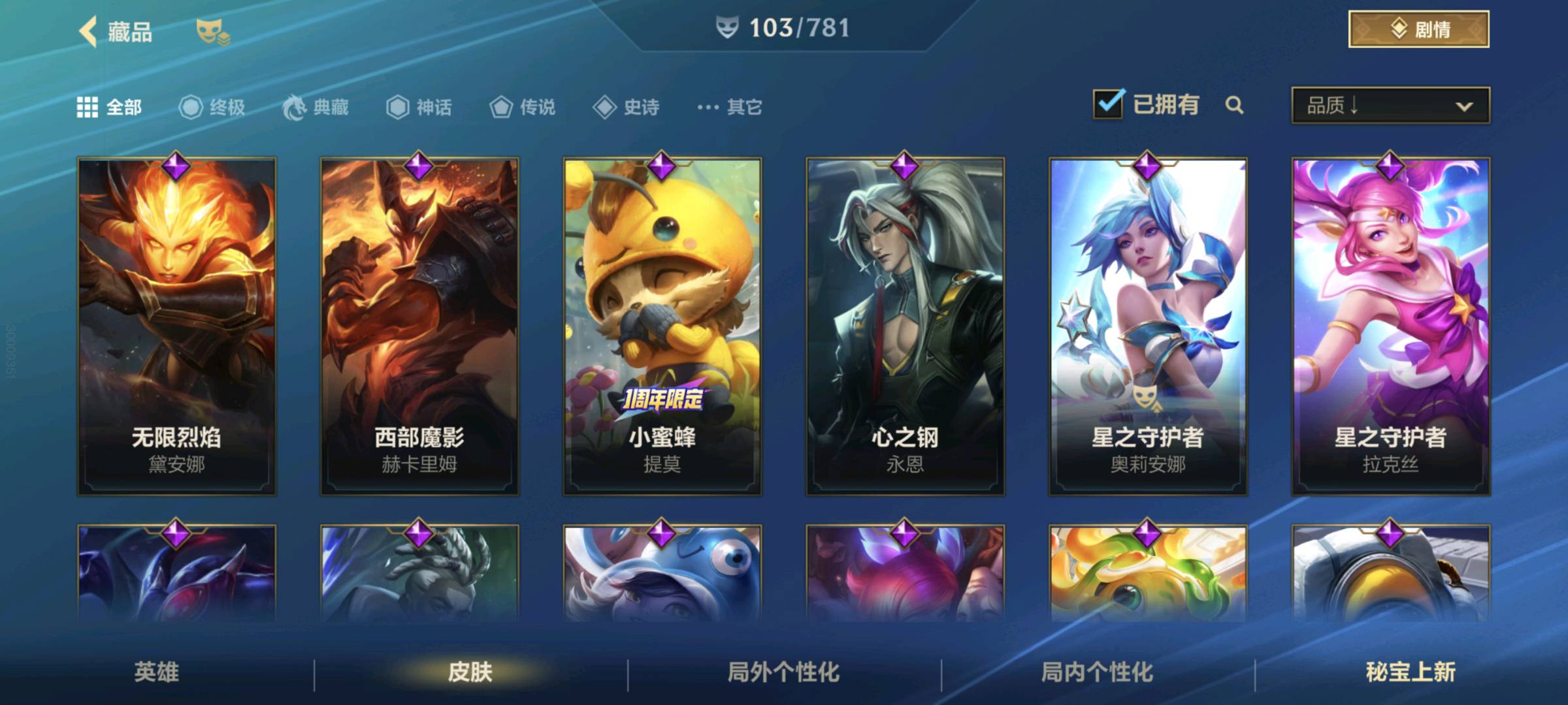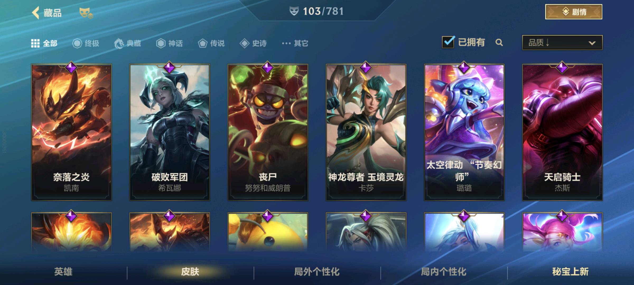 【安卓】 【允许排位】可排位 带妹号 103皮肤 阿狸至臻 传说11 史诗46 黑夜 兰亭序 神拳 格温兔年 西部