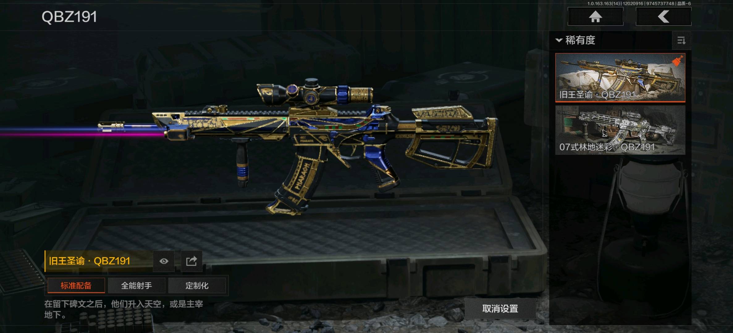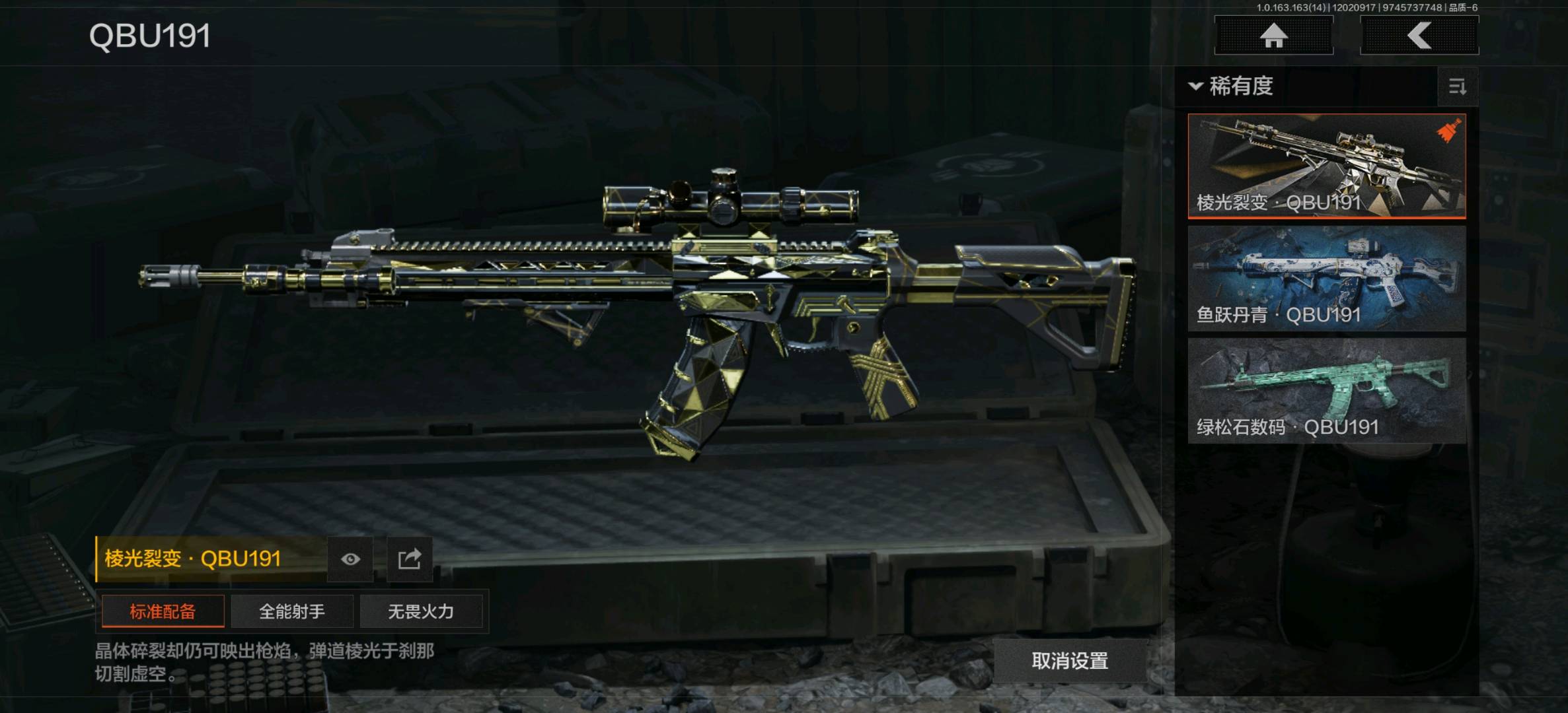 旧王圣谕VSS,棱光裂变QBU191,战术大师SVDS,典礼武备MK14,竞技M110,缟兵玄墨M110,鱼跃丹青QBU191;