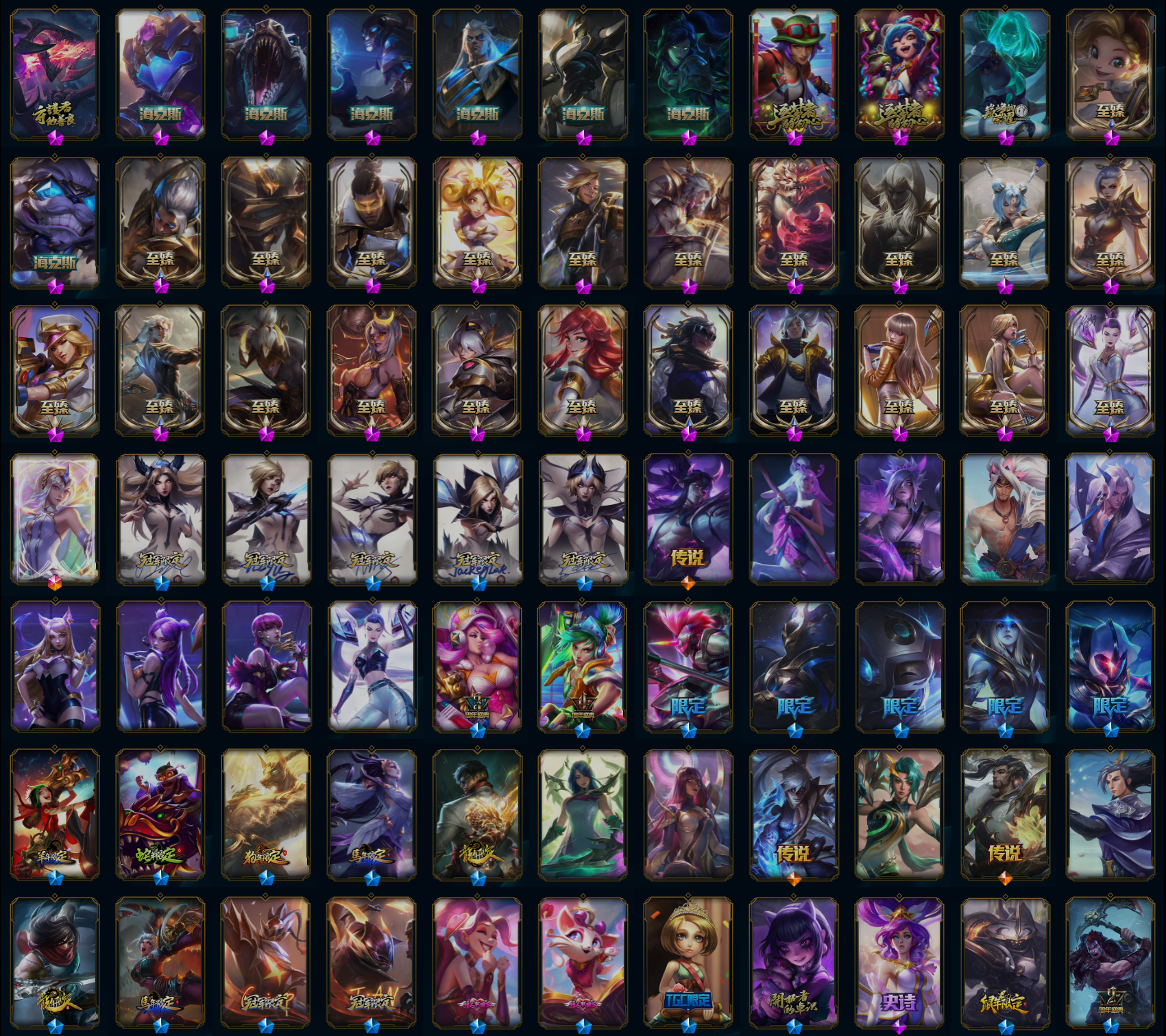 【重要皮肤】玉剑传说琴仙子至臻 女帝黛安娜至臻 奥术师佐伊至臻 未来战士卢锡安至臻 真实伤害亚索至臻 真实伤害赛娜至臻 灵能特工伊泽瑞尔至臻 王国机神玄武盖伦至臻 神龙尊者炎龙瑟提至臻 黑夜使者凯隐至臻 神龙尊者均衡之龙沃利贝尔至臻 KDA二代卡莎至臻 KDA一代卡莎至臻 KDA卡莎2022至臻 KDA伊芙琳至臻 KDA伊芙琳2022至臻 战斗学院拉克丝至臻 战斗学院拉克丝2022至臻 烈焰美人薇恩至臻 烈焰美人薇恩2022至臻 电玩女神凯特琳至臻 电玩女神凯特琳2022至臻 星之守护者妮蔻至臻 星之守护者妮蔻2022至臻 源计划正义艾瑞莉娅至臻 源计划正义艾瑞莉娅2022至臻 玉剑传说武剑仙至臻 玉剑传说武剑仙2022至臻 腥红之月亚托克斯至臻 腥红之月亚托克斯2022至臻 黑夜使者李青至臻 黑夜使者李青2022至臻 海克斯科技安妮 海克斯科技雷克顿 海克斯科技斯维因 海克斯科技吉格斯 海克斯科技玛尔扎哈 海克斯科技波比 海克斯科技阿木木 海克斯科技拉莫斯 暗星科加斯 零之枪骑赫卡里姆 摄魂使者薇恩 青年瑞兹 胜利剑圣易 胜利女神娑娜 胜利女神希维尔 胜利之王泰达米尔 胜利巨口克格莫 哥特萝莉安妮 舞会公主安妮 创星之灵璐璐 钢铁军团拉克丝 勇敢的心德莱厄斯 电玩女神厄运小姐 电玩勇者锐雯 龙的传人李青 银龙裁决泰隆 替父从军花木兰 神龙烈焰金克丝 碧玉之牙卡西奥佩娅 你看见过我的熊猫吗安妮 北辰之威内瑟斯 南天之怒沃里克 美猴王孙悟空 定海神珍孙悟空 玉净夜叉凯特琳 紫金罗刹莫甘娜 广寒仙子嫦娥 虎痴之拳蔚 金猪烈焰瑟庄妮 烈焰美人薇恩 醒狮克格莫 神龙之翼库奇 王国机神白虎贾克斯 胜利女神瑟庄妮 胜利之树茂凯 胜利女神奥莉安娜 胜利枪神格雷福斯 胜利枪神卢锡安 胜利之剑亚托克斯 甜心宝贝安妮 觅心游侠卢锡安 觅心之翼奎因 觅心萝莉金克丝 觅心猫猫悠米 寒冬精灵璐璐 冬季仙境奥莉安娜 雪球也能爆炸吉格斯 圣诞老人布隆 冰雪风暴希维尔 冬季仙境卡尔玛 冰雪女神辛德拉 魄罗骑士瑟庄妮 夺命美人卡特琳娜 平安夜女神娑娜 圣诞糖果棒厄运小姐 魅惑女巫迦娜 魅惑女巫莫甘娜 魅惑女巫崔丝塔娜 魅惑女巫奈德丽 伯爵卡萨丁 大魔王提莫 灵魂收割者索拉卡 克烈古拉伯爵 勇敢的心德莱厄斯 泳池派对普朗克 泳池派对厄运小姐 泳池派对菲奥娜 泳池派对格雷福斯 泳池派对李青 电玩战魂赫卡里姆 斩星魔剑易 穿星魔锋赵信 御星魔矢艾希 创战纪希维尔 制胜金靴李青 制胜金球拉莫斯 FPX锤石 FPX薇恩 FPX李青 FPX普朗克 FPX墨菲特 iG卡蜜尔 iG洛 iG卡莎 iG艾瑞莉娅 iG乐芙兰 iG菲奥娜 SSG霞 SSG纳尔 SKTT1烬 SKTT1辛德拉 SKTT1娜美 SKTT1奥拉夫 SKTT1卡莉丝塔 SKTT1瑞兹 SKTT1雷克顿 SSW锤石 SSW雷恩加尔 SSW图奇 SSW辛吉德 SKTT1劫 SKTT1李青 SKTT1薇恩 暗杀星蒙多 暗杀星努努和威朗普 暗杀星伊泽瑞尔 暗杀星慎 Fnatic迦娜 Fnatic古拉加斯 Fnatic卡尔萨斯 冰雪节格雷福斯 冰雪节玛尔扎哈 冰雪节辛吉德 防暴士兵格雷福斯 防暴士兵辛吉德 防暴天使凯尔 钢铁之翼艾尼维亚 冠军典狱长锤石 冠军掠夺者卡兹克 冠军之矛卡莉丝塔 冠军之刃锐雯2016 鬼影森森茂凯 鬼影重重魔腾 海贼瑞兹 红桃杰克崔斯特 胡桃夹子萨科 警用试作体K9内瑟斯 蓝色忧郁崔斯特 蒙多蒙多 密林猎手提莫 南瓜头费德提克 女猎手希维尔 圣诞精灵崔丝塔娜 圣诞开心鬼提莫 圣诞狂欢基兰 圣诞狂欢努努和威朗普 圣诞老人古拉加斯 圣诞玩偶波比 圣诞驯鹿克格莫 糖果使徒费德提克 外星装甲库奇 无头骑士赫卡里姆 喜庆之树茂凯 邪恶圣诞老人维迦 幸福女神乐芙兰 雪默丁格 雪球也能爆炸吉格斯 雪装奈德丽 野兽猎人德莱文 野兽猎人瑟庄妮 野兽猎人泰达米尔 英勇玩具兵普朗克 永恒之森乐芙兰 勇者奈德丽 征服者韦鲁斯 暗影沃里克 机械迷城加里奥 诺斯费拉图弗拉基米尔 阿木木主人不要我了 波比的巧克力工坊 地底世界崔斯特 都铎王朝图奇 十五周年纪念希维尔 十周年纪念安妮 源代码乐芙兰 胜利凤凰艾尼维亚 大元素使拉克丝 未来战士伊泽瑞尔 武装战姬厄运小姐