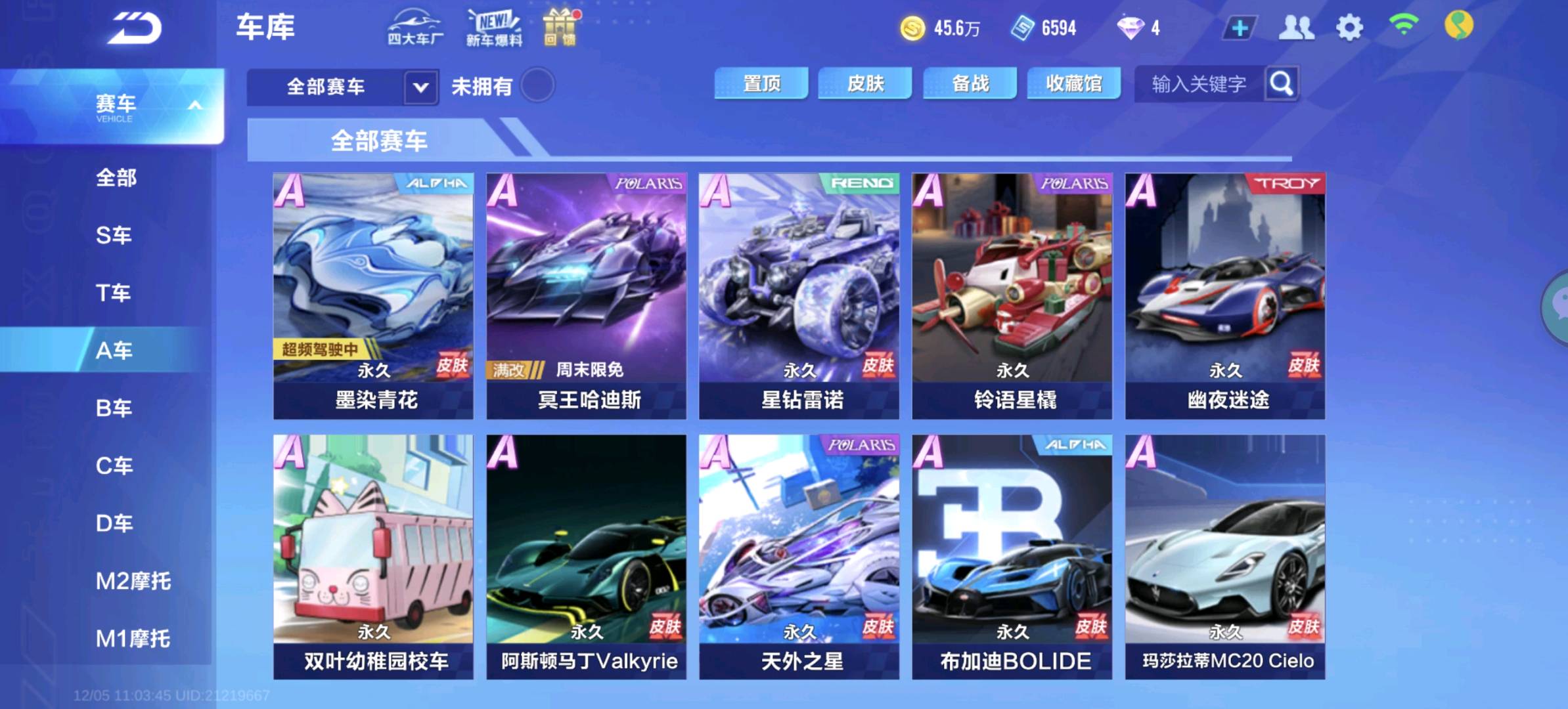 【安卓】 v5 20a车/星钻雷诺/幽夜迷途/阿斯顿马丁/沙漠领主/121装扮度