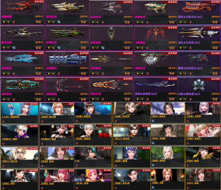 3.除紫钻武器外,有紫钻之外的:特典加特林黯火,第12到21赛季悬赏(缺13)武器,光束1和3,闪电套,维京套!强化武器全满,配件武器最少5阶!已去黑雾!