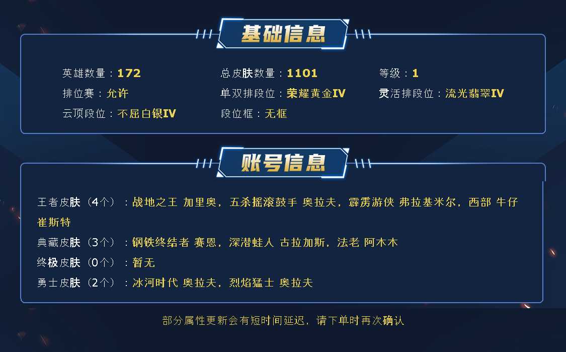 ~~喜欢记得收藏~~可排位~~1100皮全英雄~~租之前尽量查一下游戏ID,确保段位是您需要的,避免浪费您的时间~~请勿挂机逃跑故意送人头,谢谢合作,谢谢~~