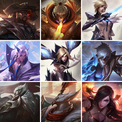 【重要头像】至爱的鹿 觅心游侠卢锡安 雪花 春晖神女拉克丝 玉剑传说苍鸾炫彩 我麦是开的么 击拳 魄罗宇航员 魄罗虎虎生威 神凰行者霞炫彩 招财进宝提莫炫彩 太空律动布里茨炫彩 至臻青花瓷拉克丝 至臻战斗学院蕾欧娜 至臻奥术师佐伊 至臻魔女婕拉